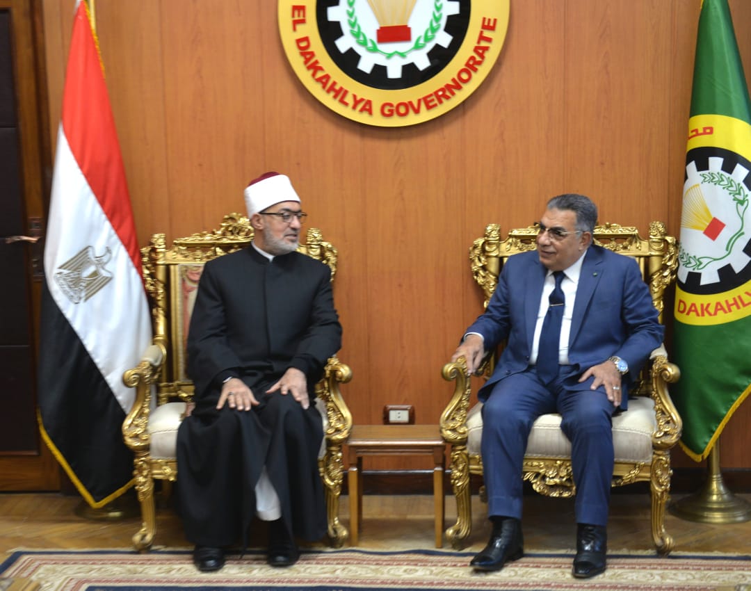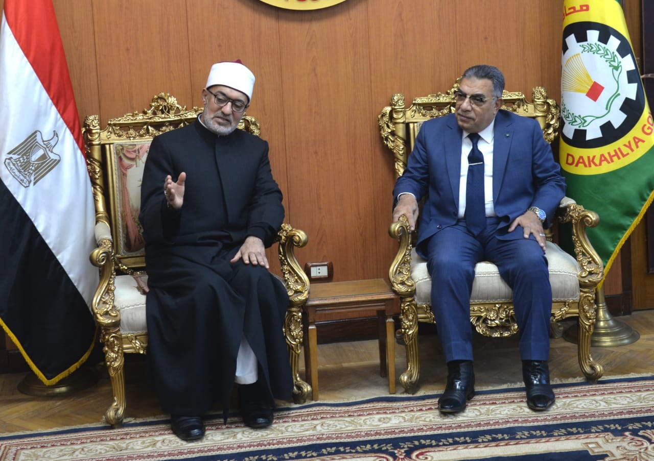 محافظ الدقهلية يستقبل مفتى الجمهورية لمناقشة رسالة دكتوراه بالجامعة