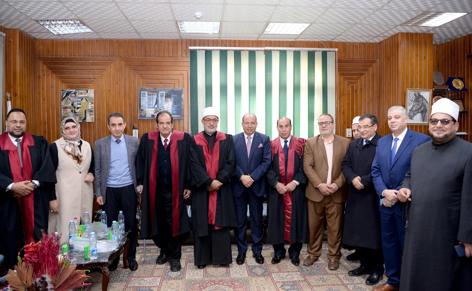 رئيس جامعة المنصورة يهدى مفتي الجمهورية درع الجامعة