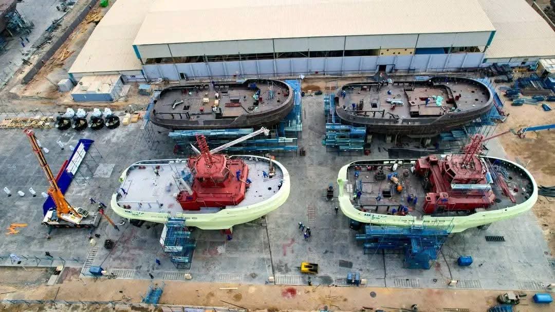 وأشار رئيس مجلس إدارة شركة ترسانة جنوب البحر إلى أن معدلات بناء القاطرات الجديدة تسير بخطوات متسارعة وفق الجدول الزمني المحدد حيث تتطلع الشركة إلى تدشين القاطرتين "عزم 1 " و "عزم 2" خلال الربع الأول من العام الجاري والتي وصلت نسبة إنجاز أعمال البناء بهما إلى 90% و 80%  على التوالي، فيما يتم استكمال أعمال بناء القاطرتين "عزم " و"عزم 4" والتي وصلت نسبة الإنجاز بهما إلى 60% ، و50% على الترتيب، وذلك بالتوازي مع أعمال بناء القاطرتين "عزم 5" و" عزم 6" التي بلغت نسبة إنجاز أعمال البناء بهما إلى 45% و40 % على التوالي.