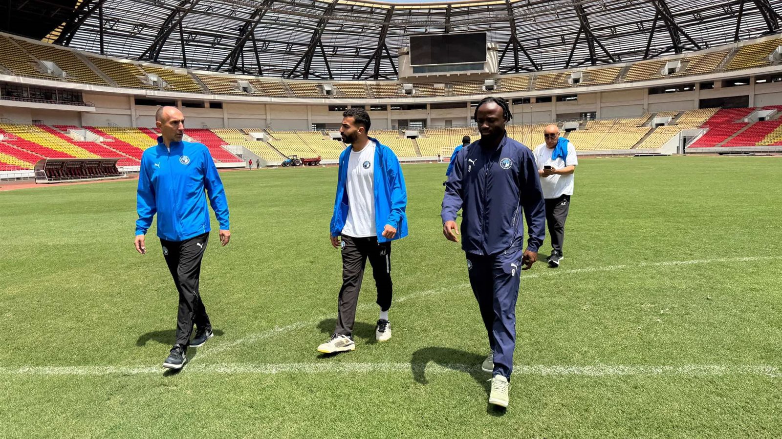 حرص الكرواتي كرونسلاف يورتشيتش المدير الفني لفريق نادي بيراميدز، على معاينة أرضية استاد ١١ نوفمبر، الذي تقام عليه المواجهة التي تجمع فريقه بنادي ساجرادا غدا السبت في إطار مباريات دوري أبطال أفريقيا.
