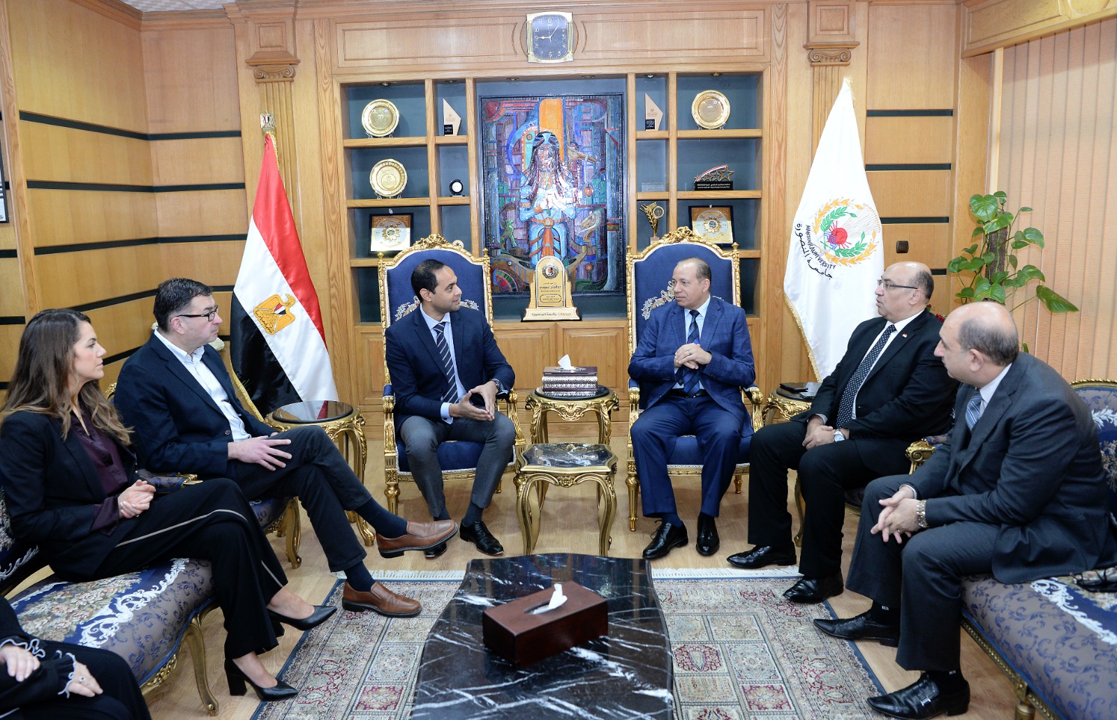 رئيس جامعة المنصورة خلال لقائه مع وفد جامعة مانشستر