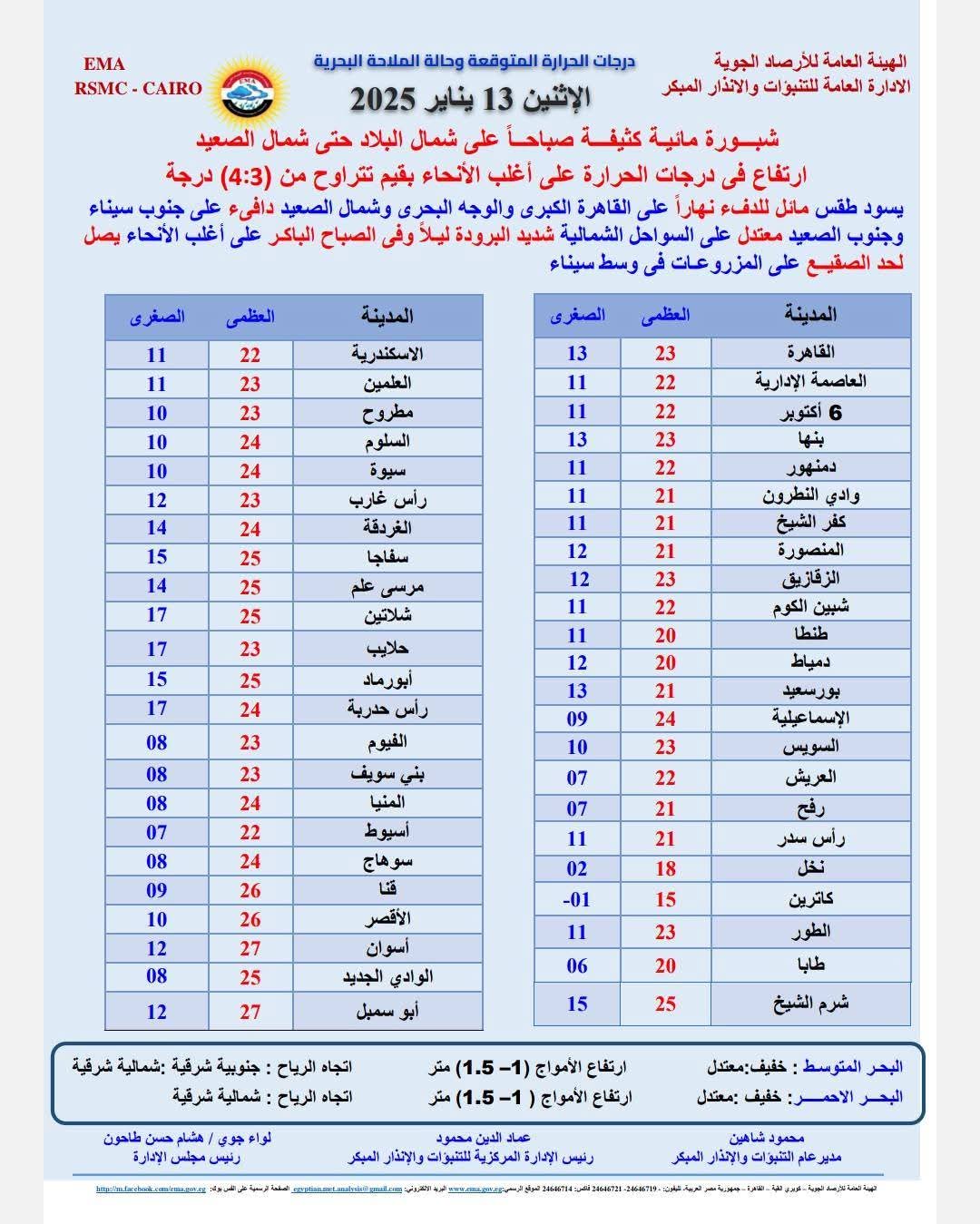 درجات الحرارة اليوم 13-1-2025