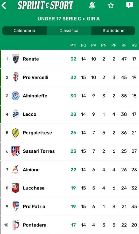 ويتواجد بروفيرشيلي في وصافة ترتيب الدوري الإيطالي “Lig bro”، برصيد برصيد 32 نقطة، لكن فارق الأهداف لصالح ريناتي مما جعله يتصدر المسابقة.
