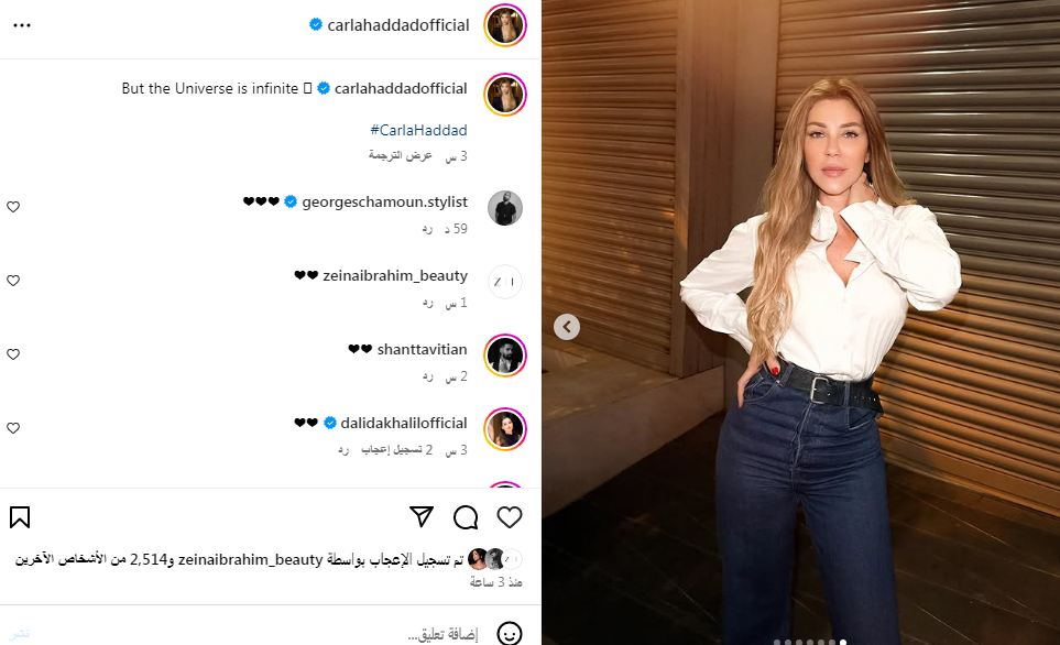 شاركت الإعلامية اللبنانية كارلا حداد متابعيها بأحدث إطلالاتها عبر حسابها الشخصي بموقع الإنستجرام.