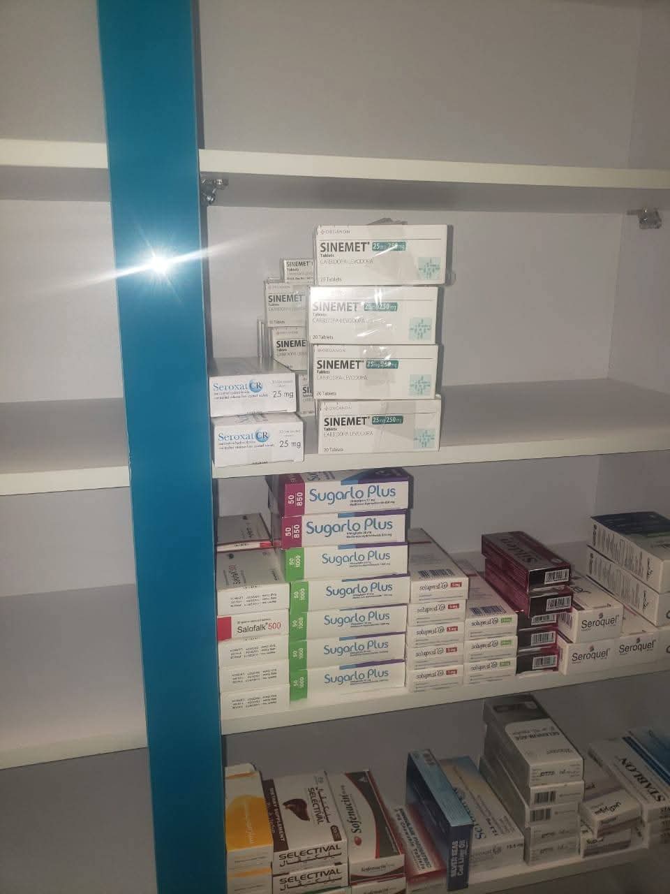 كما توفر الصيدلية الأنسولين بجميع أنواعه لتلبية احتياجات مرضى السكر، بالإضافة إلى أدوية الغدة الدرقية التي تُستخدم لمعالجة الاضطرابات الهرمونية ، و أدوية الضغط والسكر والأمراض المزمنة .