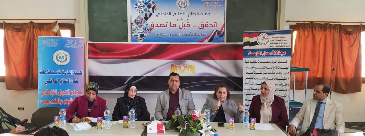 يأتي ذلك فى إطار استمرار فعاليات الحملة الإعلامية القومية للتوعية، بأهمية التصدى للشائعات تحت شعار «اتحقق قبل ما تصدق»، التى انطلقت على مستوى جميع مراكز النيل بمحافظات جمهورية مصر العربية، بتوجيهات الدكتور أحمد يحيى رئيس قطاع الإعلام الداخلي، وبرعاية الدكتور ضياء رشوان رئيس الهيئة العامة للاستعلامات .