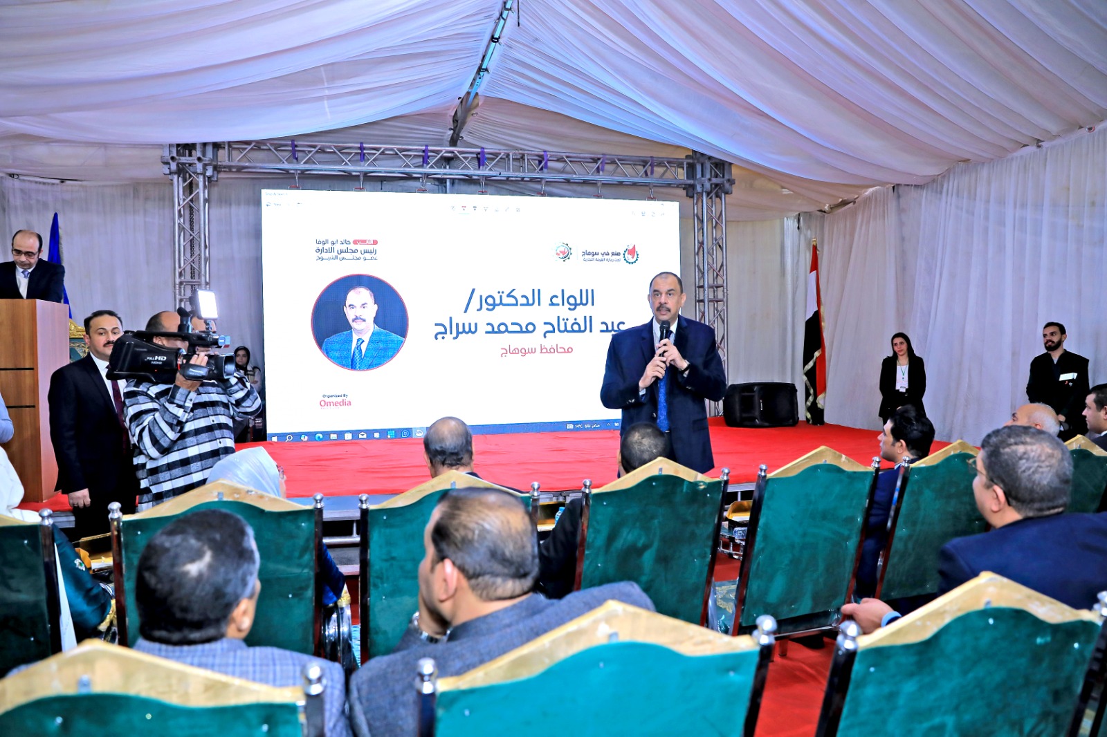 إفتتح اللواء دكتور عبد الفتاح سراج، محافظ سوهاج، معرض "صُنع في سوهاج"، المقام بأرض سينما أوبرا بميدان الثقافة، والذي تم تنفيذه بالتعاون مع الغرفة التجارية بالمحافظة، وجهاز تنمية المشروعات الصغيرة والمتوسطة ومتناهية الصغر، وذلك في إطار جهود دعم الإقتصاد الصناعي المحلي، وتعزيز الصناعات التراثية، والصناعات الصغيرة، ومتناهية الصغر، واستمرارا للفعاليات والمعارض التي تم إطلاقها منذ بداية هذا العام، بهدف رفع العبء عن كاهل المواطنين .