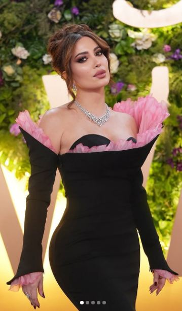 وفي نفس السياق، بثبات ورقي خطفت النجمة نسرين طافش عدسات الصحافة والإعلام بإطلالتها الساحرة، حيث ارتدت فستانًا طويلًا مجسمًا، بأكمام طويلة منسدلة على كتفها، صمم من قماش المخمل المطعم بالأورجانزا من فوق ليعكس سحر قوامها بتصميم ساحر وقماش ناعم، ينتمى الفستان من مجموعة خريف وشتاء 2025 وحمل توقيع مصمم الأزياء اللبناني فؤاد سركيس.