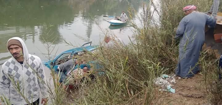 سقوط سيارة ملاكى بالمنوفية ومصرع الأب وإبنته داخل ترعة الباجورية