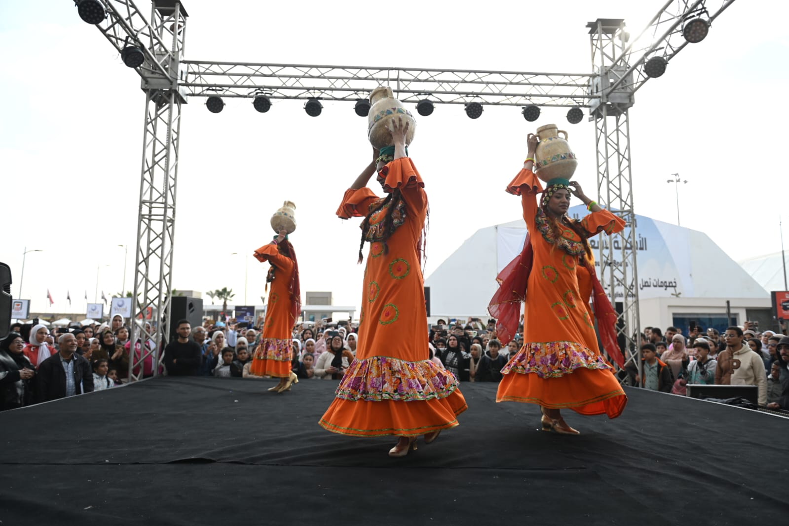 وعلى نفس المسرح، قدمت فرقة "بنات وبس" التابعة للمركز القومي لثقافة الطفل عرضا استعراضيا مبهرا استمد طابعه من التراث الشعبي.