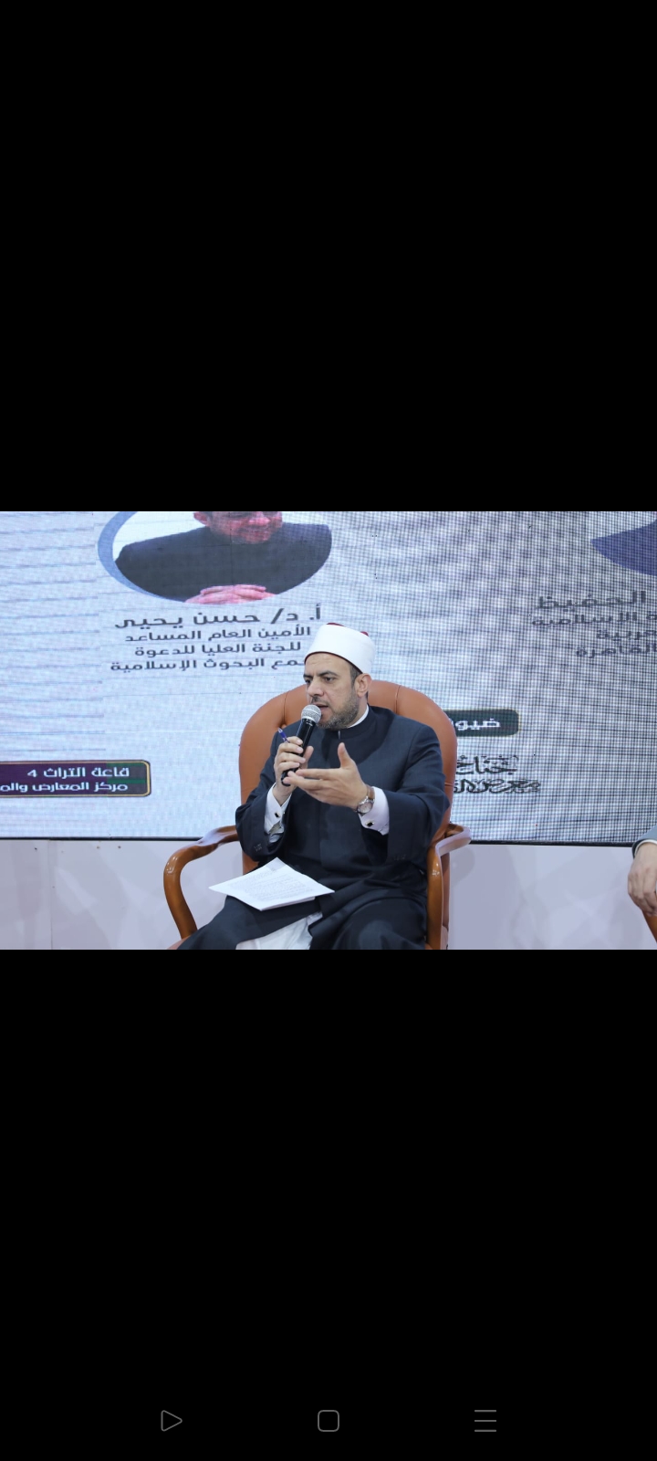 حاضر في الندوة؛ أ.د محمد عبد الحفيظ، أستاذ الآثار والحضارة الإسلامية بكلية اللغة العربية بجامعة الأزهر بالقاهرة، والدكتور حسن يحيى، الأمين العام المساعد للجنة العليا للدعوة بمجمع البحوث الإسلامية، وأدار الندوة الدكتور صلاح عبد المولى الشورى، المدرس بقسم التاريخ والحضارة بكلية اللغة العربية بجامعة الأزهر.