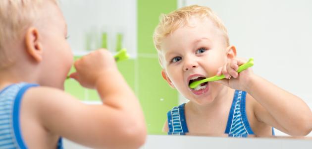 تنظيف الأسنان: تنظيف الأسنان مرتين يوميًا بالفرشاة والمعجون.