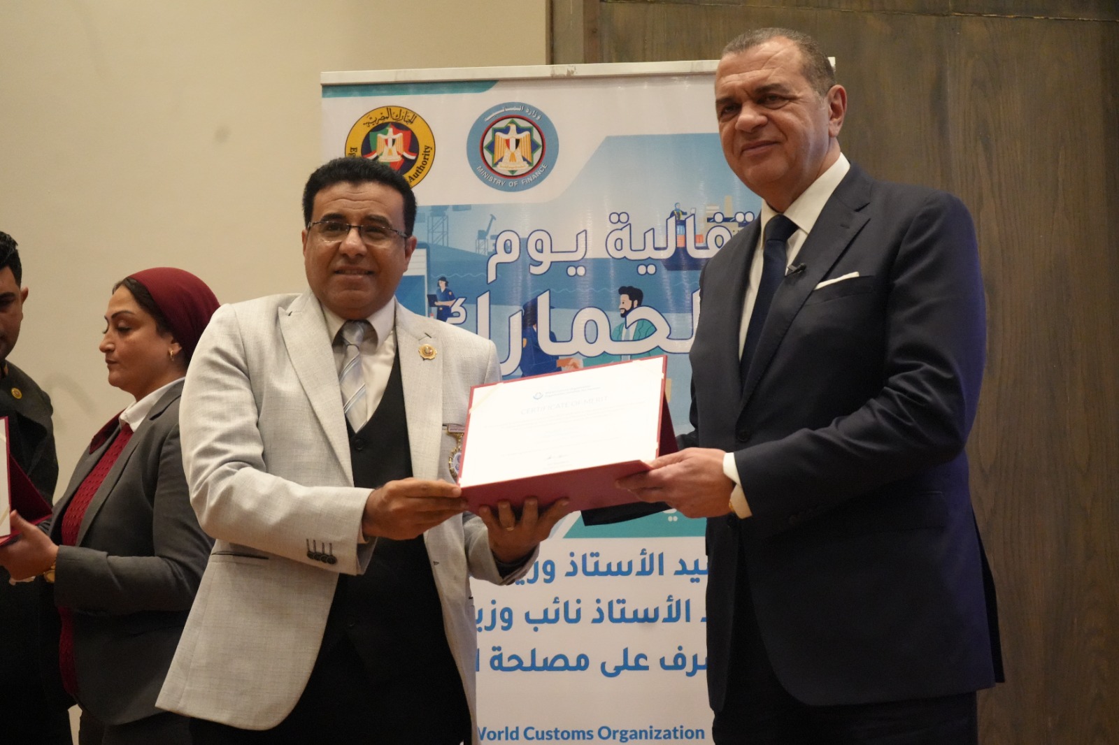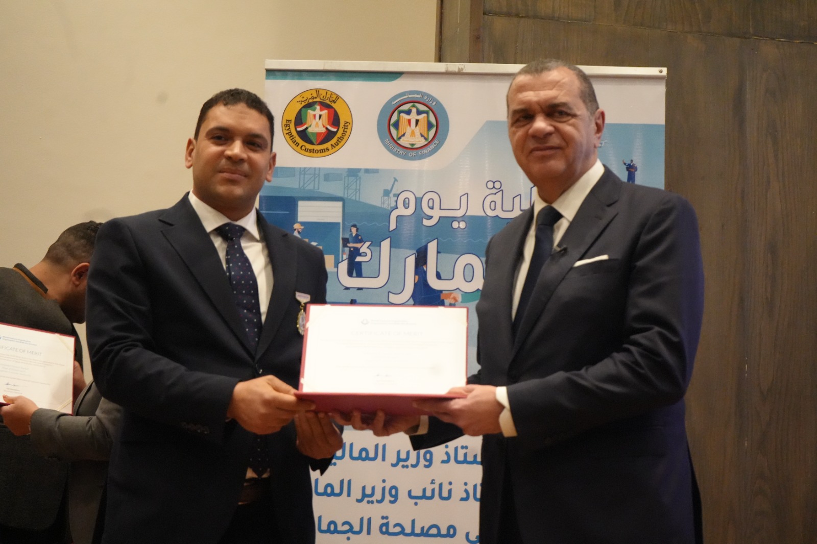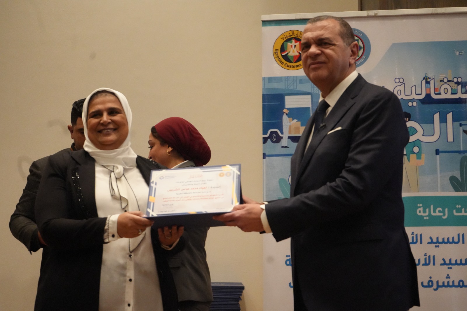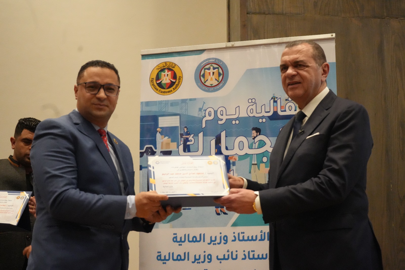 كما قام بتكريم العاملين المتميزين لتحفيزهم على مواصلة جهودهم للارتقاء بالمنظومة الجمركية، وهم: أحمد أبو الحسن رئيس الإدارة المركزية لشئون مكتب رئيس مصلحة الجمارك، وأحمد القرنشاوي رئيس الإدارة المركزية لجمارك الإسكندرية، ومها ماهر مدير عام خدمة العملاء بالإدارة المركزية لبرامج المشغل الاقتصادي، وأمل عبد الفتاح مديرعام مبادرات التطوير والإصلاح الجمركي، ومصطفي محمد عبد الفضيل مدير عام العلاقات العامة، ومحمد محمود مدير عام جمرك طرود البريد بالإدارة المركزية للصادرات والواردات الجوية، ونصره علي مدير إدارة تحليل نظم التعريفة بالإدارة المركزية للسياسات والإجراءات، وصافيناز مصطفى مدير إدارة المتابعة بالإدارة المركزية لجمارك المنطقة الغربية، وطه حسين عبد العزيز مدير إدارة المكتب الفني بالإدارة المركزية لتكنولوجيا الالتزام، وروفائيل سليمان مدير إدارة المكافحة بالقاهرة بالإدارة المركزية لدعم العمليات بمنطقة الوسطى والجنوبية.