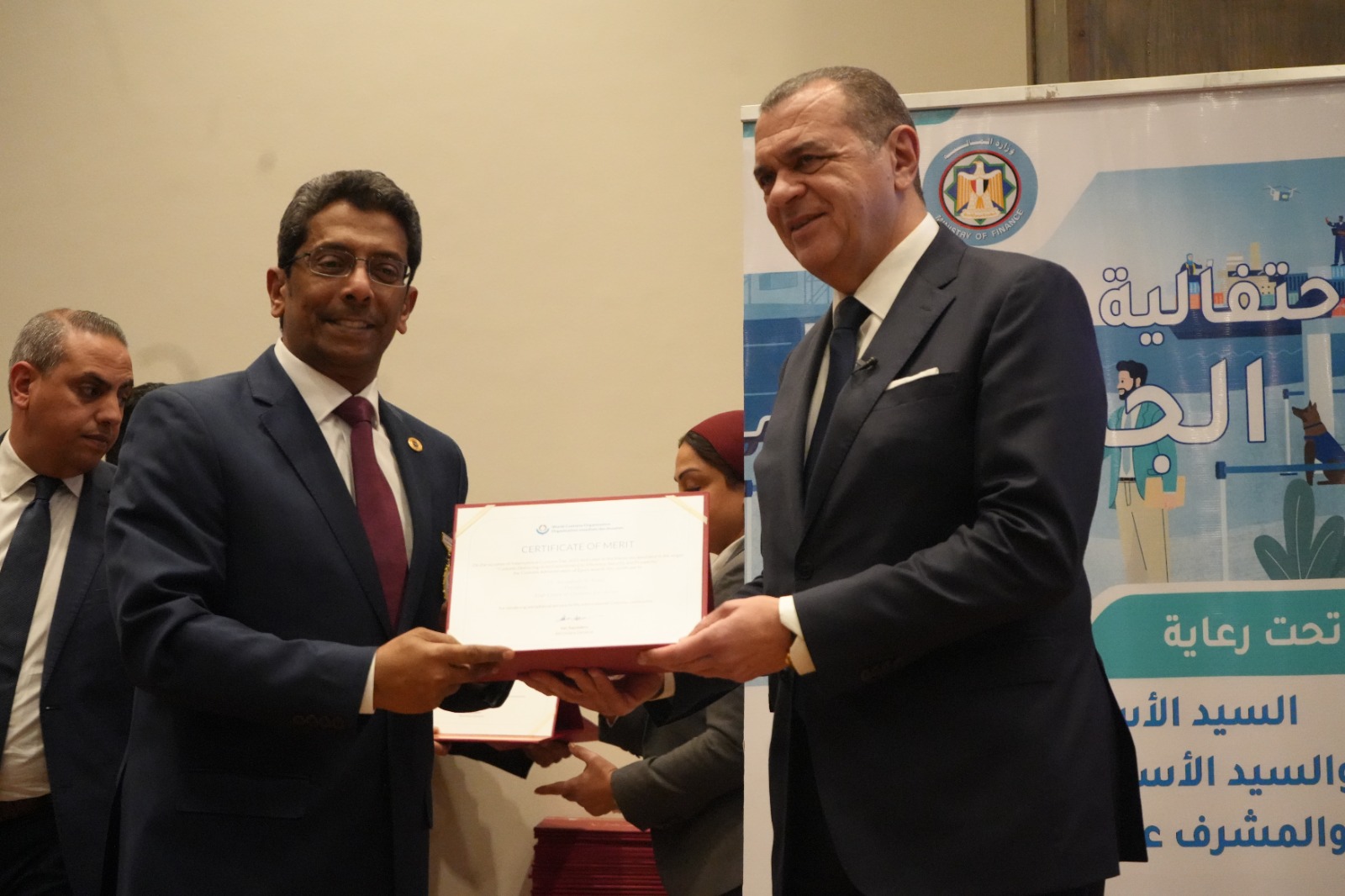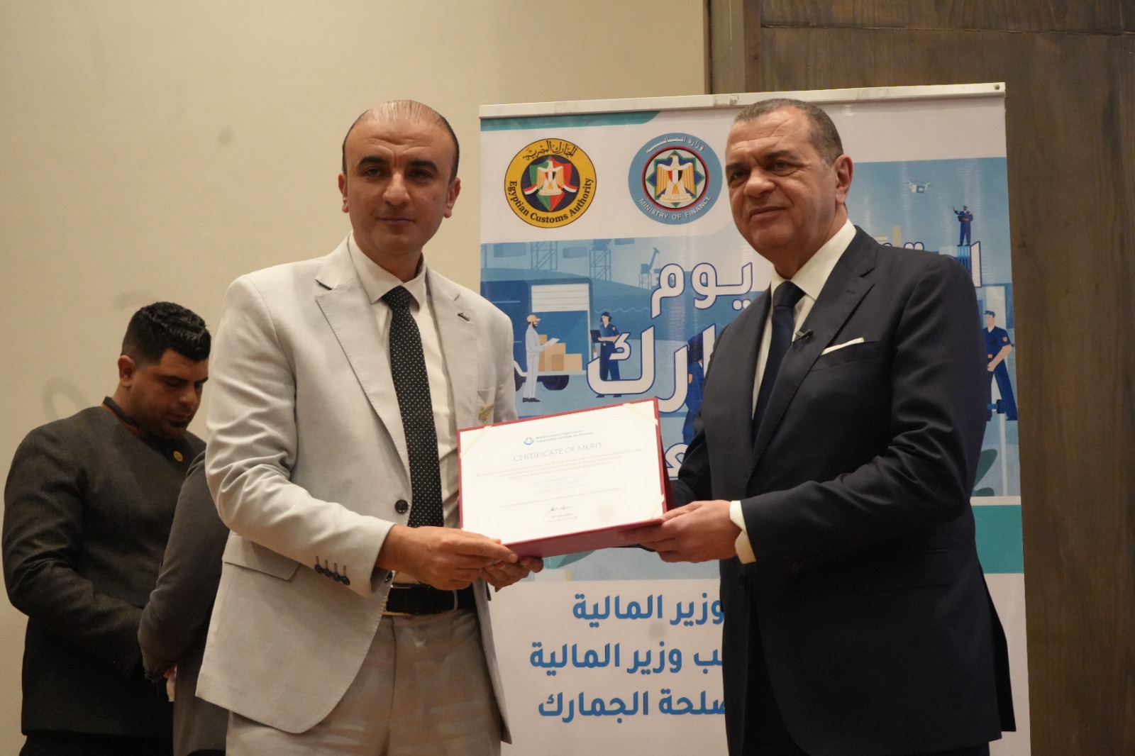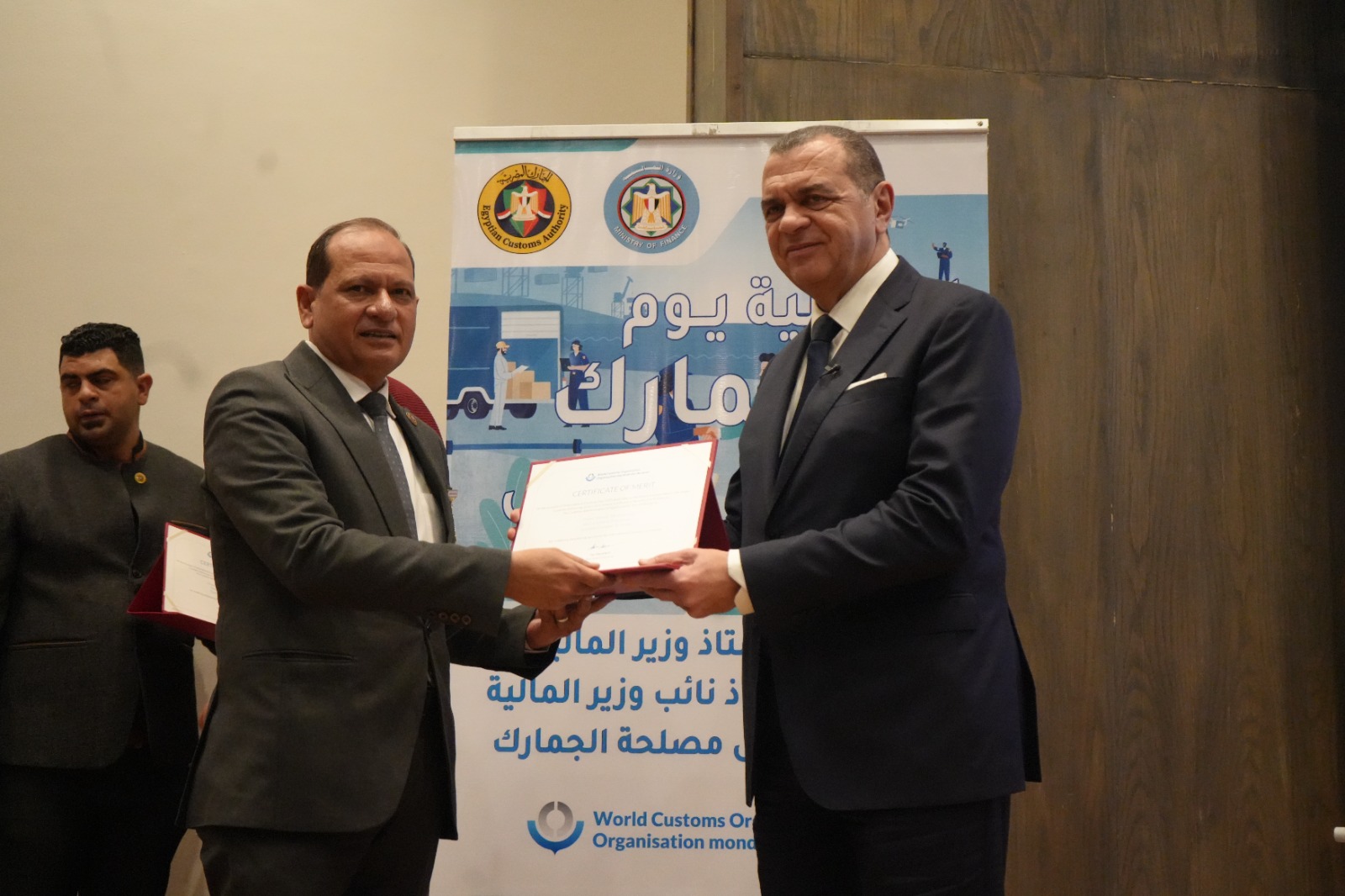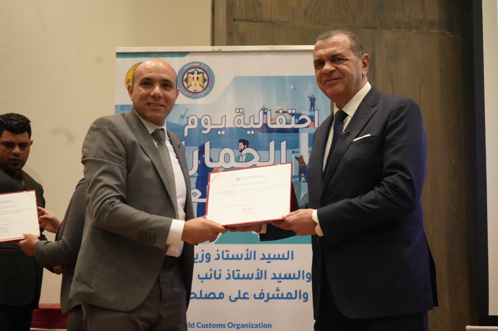 كما قام بتكريم العاملين المتميزين لتحفيزهم على مواصلة جهودهم للارتقاء بالمنظومة الجمركية، وهم: أحمد أبو الحسن رئيس الإدارة المركزية لشئون مكتب رئيس مصلحة الجمارك، وأحمد القرنشاوي رئيس الإدارة المركزية لجمارك الإسكندرية، ومها ماهر مدير عام خدمة العملاء بالإدارة المركزية لبرامج المشغل الاقتصادي، وأمل عبد الفتاح مديرعام مبادرات التطوير والإصلاح الجمركي، ومصطفي محمد عبد الفضيل مدير عام العلاقات العامة، ومحمد محمود مدير عام جمرك طرود البريد بالإدارة المركزية للصادرات والواردات الجوية، ونصره علي مدير إدارة تحليل نظم التعريفة بالإدارة المركزية للسياسات والإجراءات، وصافيناز مصطفى مدير إدارة المتابعة بالإدارة المركزية لجمارك المنطقة الغربية، وطه حسين عبد العزيز مدير إدارة المكتب الفني بالإدارة المركزية لتكنولوجيا الالتزام، وروفائيل سليمان مدير إدارة المكافحة بالقاهرة بالإدارة المركزية لدعم العمليات بمنطقة الوسطى والجنوبية.