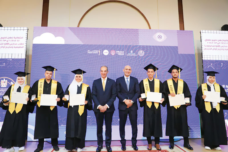 فى خطوة نحو تعزيز التعليم الفنى والتكنولوجى فى مصر، شهد الدكتور عمرو طلعت، وزير الاتصالات وتكنولوجيا المعلومات، ومحمد عبداللطيف، وزير التربية والتعليم والتعليم الفنى، حفل تخريج أول دفعتين من طلاب مدارس WE للتكنولوجيا التطبيقية للعامين الدراسيين 2022-2023 و2023-2024، الحفل الذى أقيم بمركز إبداع مصر الرقمية «كريتيفا» فى الجيزة، شهد تخرج 1137 طالبًا وطالبة من 6 محافظات على مستوى الجمهورية.