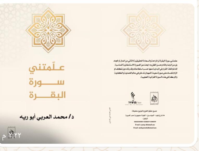 يشهد معرض القاهرة الدولي للكتاب غدا الجمعة توقيع ثلاثة كتب للدكتور محمد العربي أستاذ الشريعة الإسلامية وعضو المنظمة العالمية للأزهر الشريف وهذه الكتب هي "علمتني سورة يوسف، علمتني سورة البقرة، علمتني سورة الكهف".