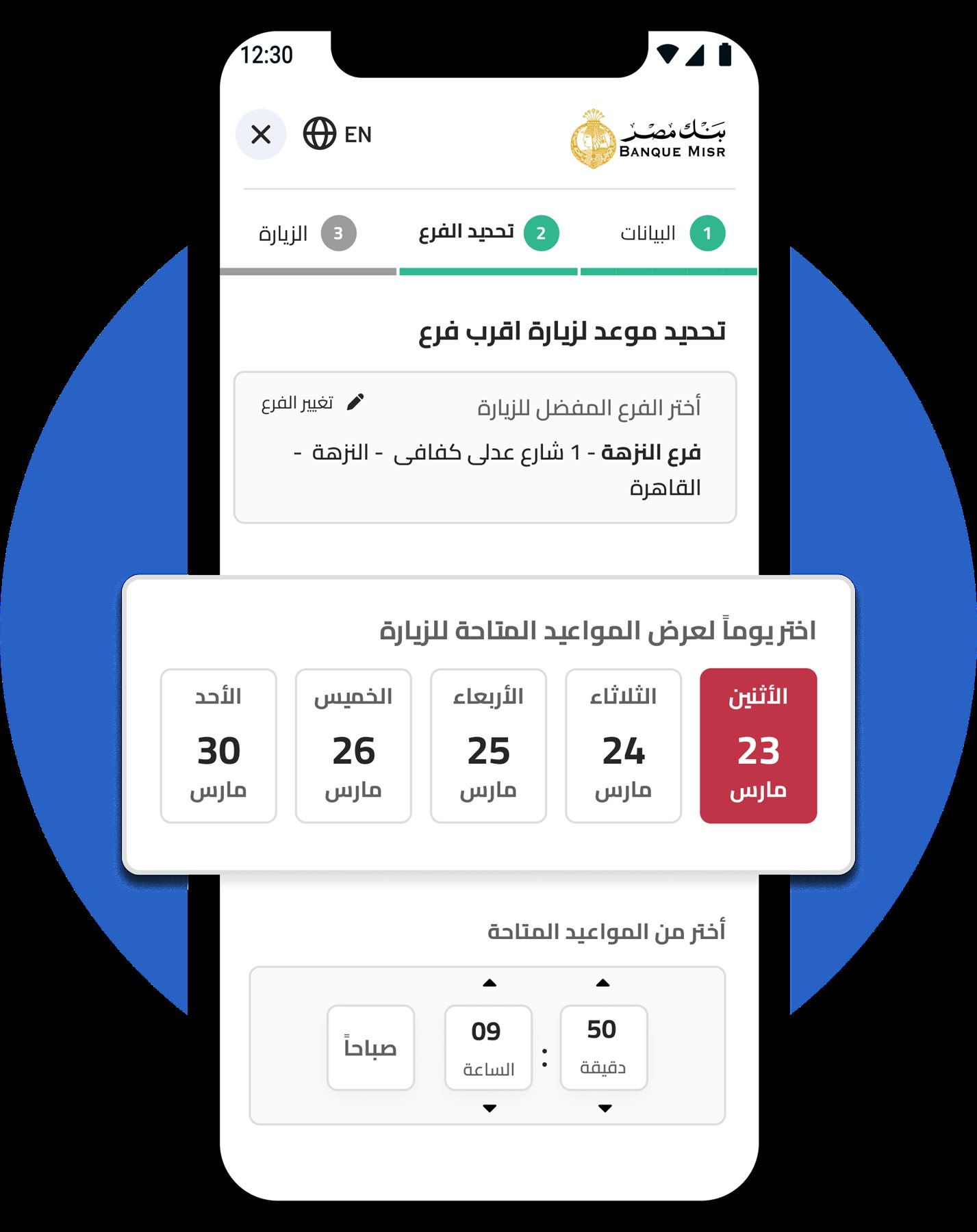 حدد الفرع وموعد الزيارة لإتمام إجراءات تفعيل الحساب