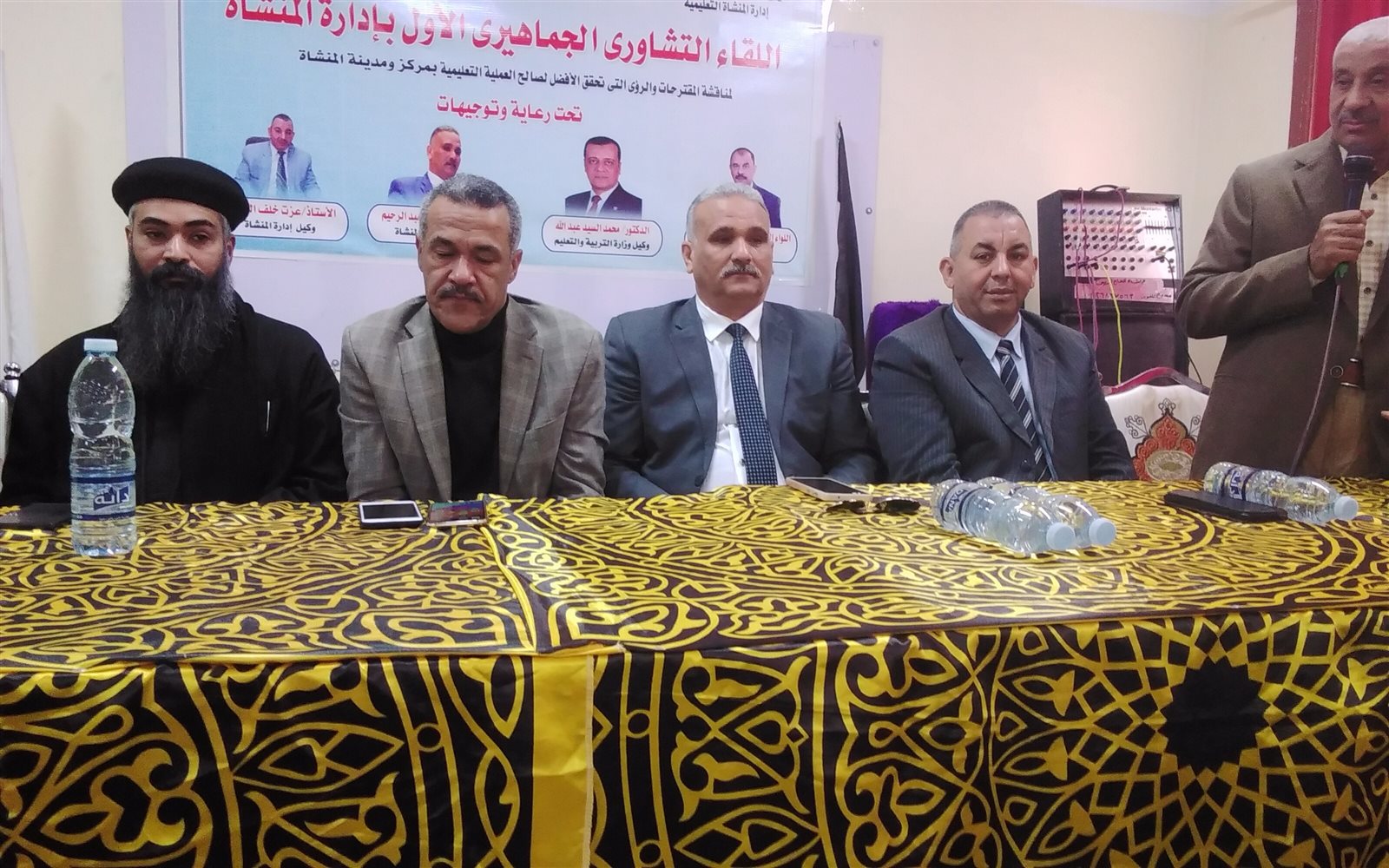 شهد أيمن تمام عبد الرحيم مدير عام إدارة المنشاة التعليمية جنوب محافظة سوهاج اللقاء التشاوري الجماهيري الأول بمقر مدرسة أولاد علي للتعليم الأساسي بقطاع العسيرات التعليمي وذلك لمناقشة المقترحات والرؤى التي تحقق الأفضل وتوفر بيئة مدرسية آمنة ومستقرة بكافة المؤسسات التربوية بمركز ومدينة المنشاة وذلك في ضوء الجهود التي تبذلها قيادات الإدارة للتواصل بين كافة عناصر المنظومة التعليمية وفي تجربة رائدة للحوار المجتمعي الهادف للنهوض بالعملية التعليمية بالمدارس .