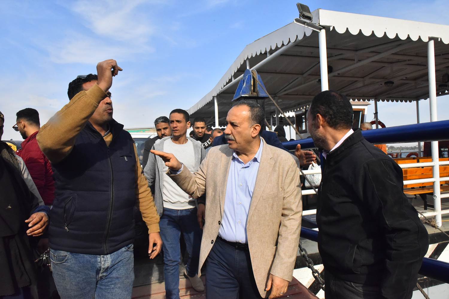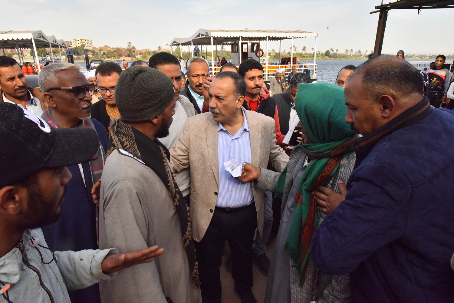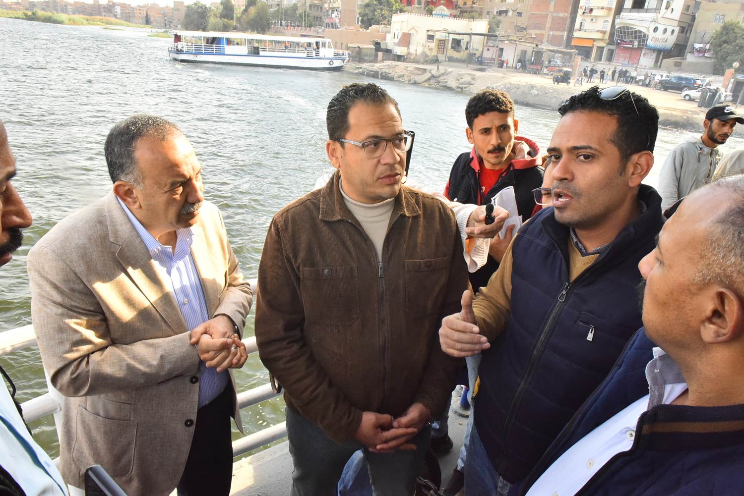 كما التقى أبوالنصر، بالمواطنين في العبارة النهرية وتحاور معهم واستمع إلى طلباتهم مؤكداً على إعلاء المصلحة العامة وتحسين الخدمات المقدمة لهم كما التقى بالعاملين على العبارة وطالبهم بضرورة اليقظة والحرص والتفاني في العمل والحفاظ على العبارات النهرية، والتأكد من سلامتها قبل التحرك حفاظاً على حياتهم وحياة المواطنين وسلامة المركبات مشدداً على ضرورة الإهتمام بأعمال الصيانة الدورية لوحدات مشروع العبارات، وتكثيف أعمال الفحص الشامل لكل وحدة قبل تحركها في المياة حفاظاً على أرواح المواطنين والعاملين وسلامة المركبات وحتى تتمكن تلك الوحدات من أداء مهامها بكفاءة وأمان