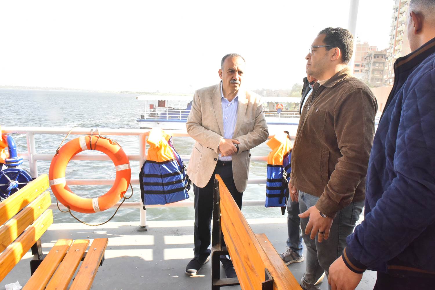 واستقل المحافظ، إحدى العباراتين وانتقل بها إلى البر الآخر من النيل لمرسى العبارات النهرية بمركز ساحل سليم للاطمئنان على الخدمات المقدمة للمواطنين والمترددين عليها، والتأكد من توافر كافة مقومات الأمان والسلامة بالعبارات النهرية قبل تحركها بالاطلاع على سترات النجاة والمراكب العائمة وطفايات الحريق حرصاً على حياة الركاب والتأكد من جاهزيتها للعمل.