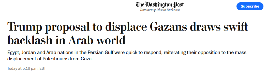"واشنطن بوست" تُحذر ترامب: تهجير أهل غزة جريمة بمعايير القانون الدولي