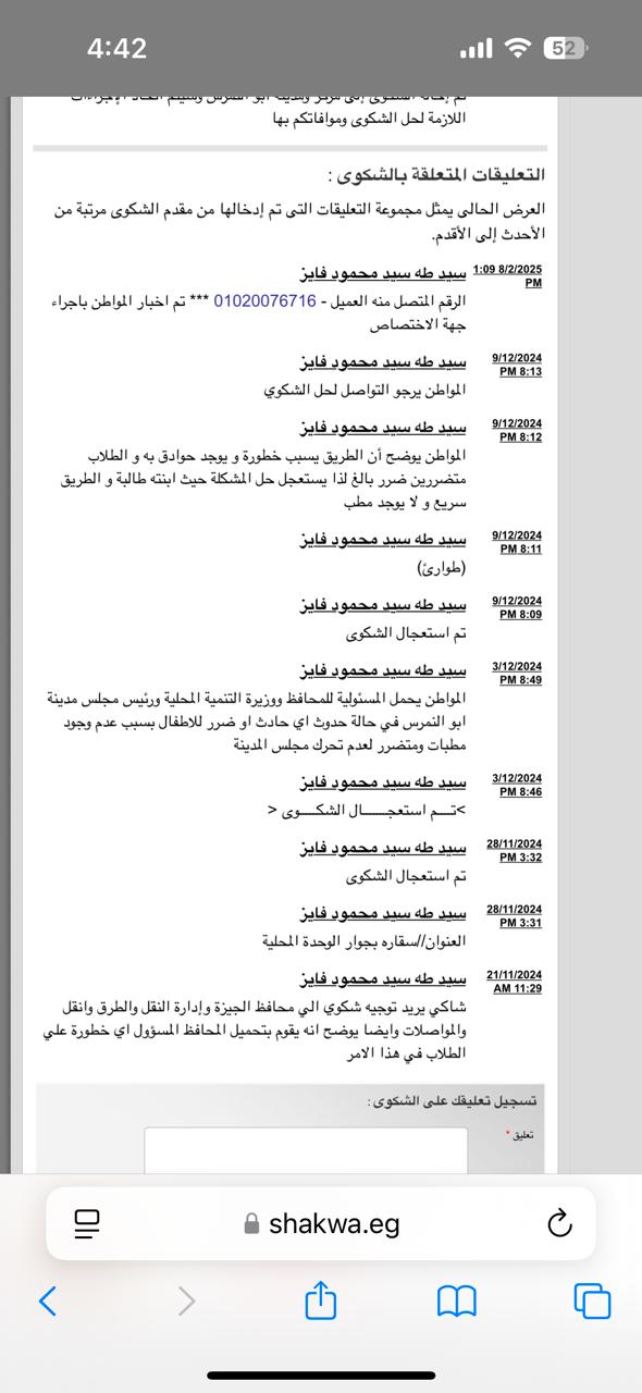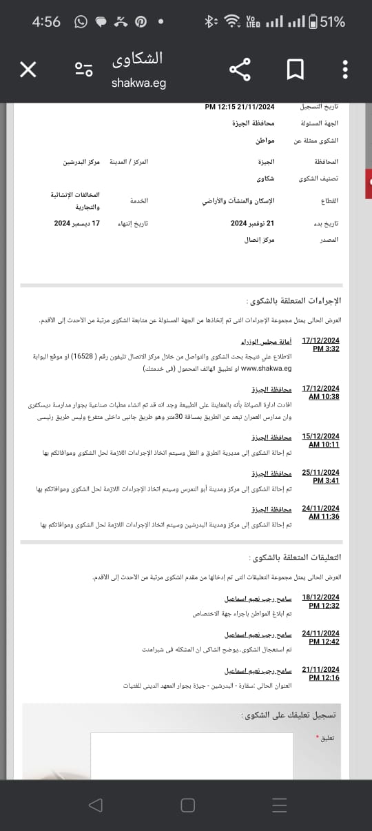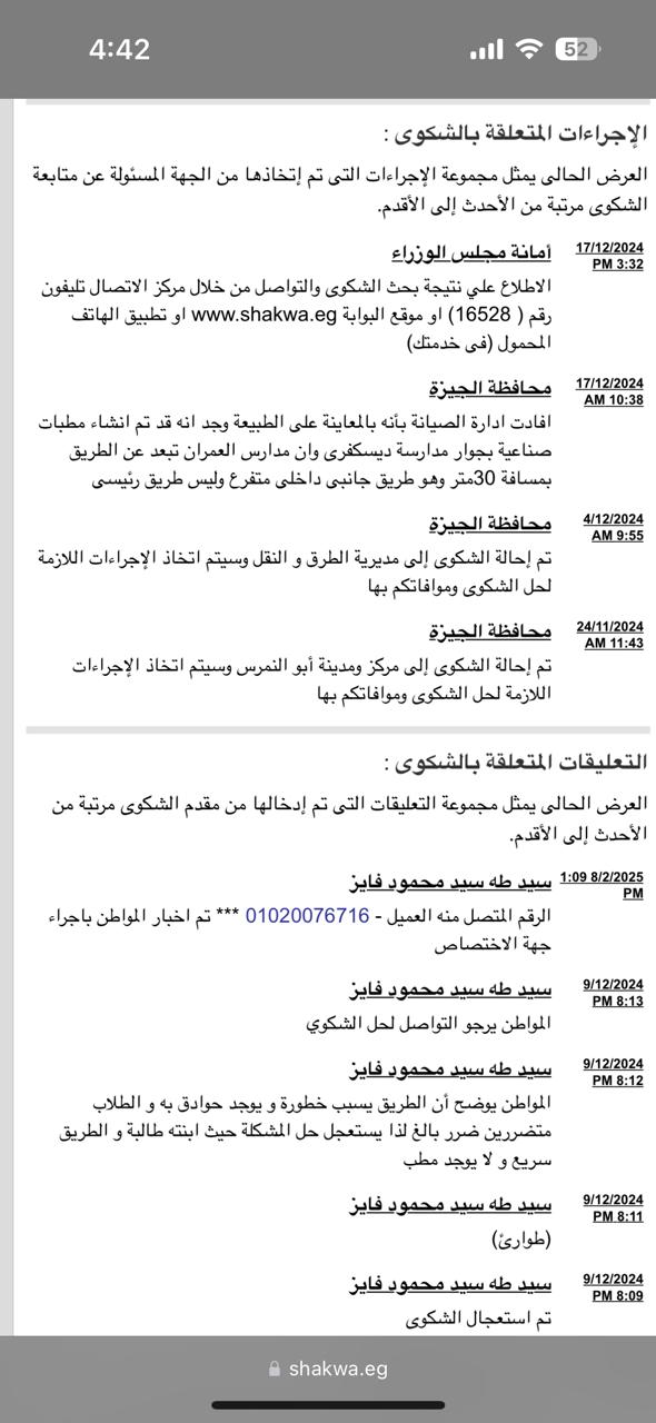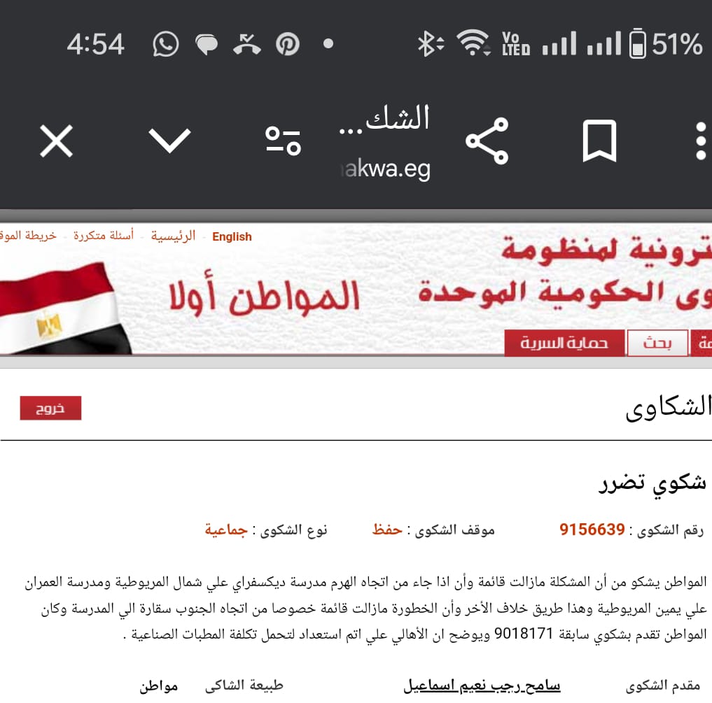 التقطت واحدة من الموضوعات التي كانت محل 150 شكوى بالتمام والكمال تلقتها المنطومة الإليكترونية الحكومية ورحت أتعقبها وأبحث ما انتهت إليه كل تلك الشكاوى ..