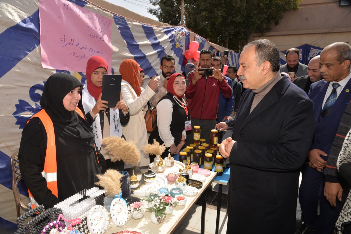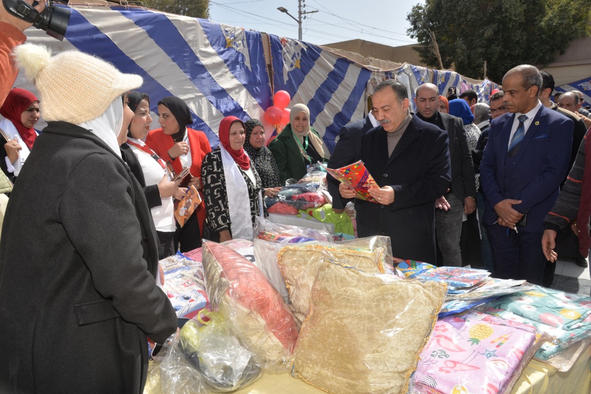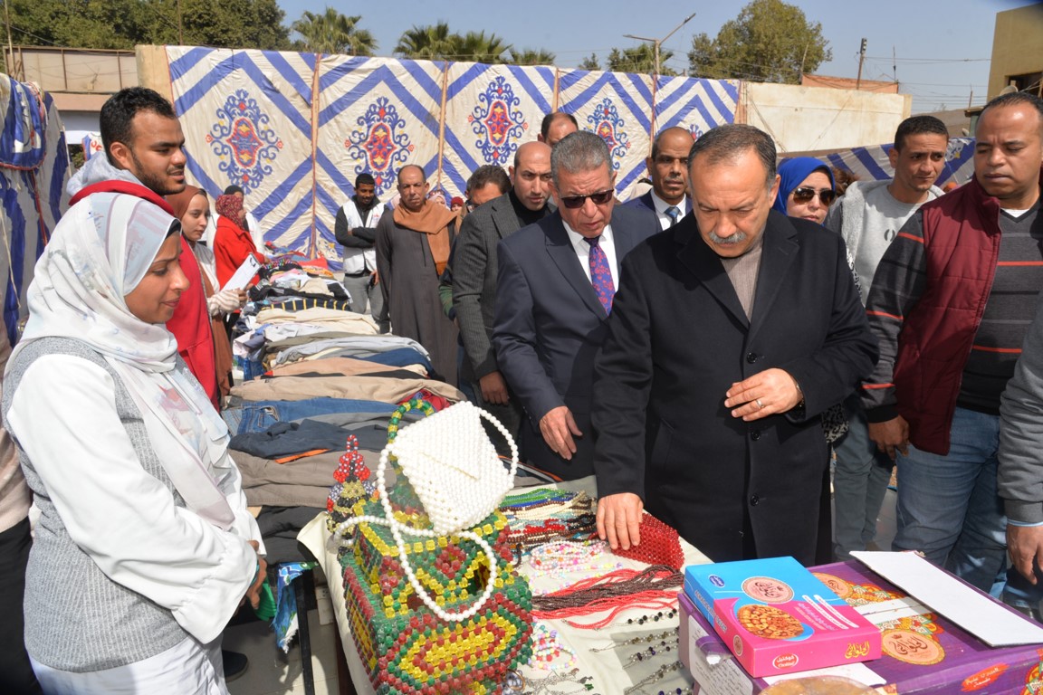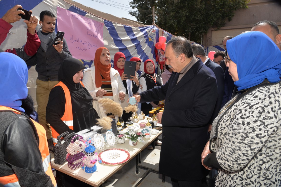محافظ أسيوط يفتتح معرض منتجات مشغل البنات بقرية ريفا لتسويق منتجاتهن