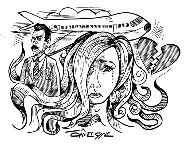 لم يستبقا الباب، وهاما معا... يحتويها وتلفحها أنفاسه الحارة... راودته بفتنتها وقناعة العيش على البقاء، لكنها عجزت عن استبقائه بجوارها –سنويا أو أكثر– إلا بضعة أسابيع وبضعة أيام إضافية وضعت سقايتها في رحله، علهما يفوزان بملامح فرحة... تتشكل بأحشائها، يباغتهما دم كاذب لها... فلن يجود بها الزمن المراق بغربته الطويلة والمتقطعة عنها، لاكتناز أموال لا تضمن فرحتهما بعد تقاعده البعيد عن السفر بعدما سولت له نفسه جمع الحسنيين.