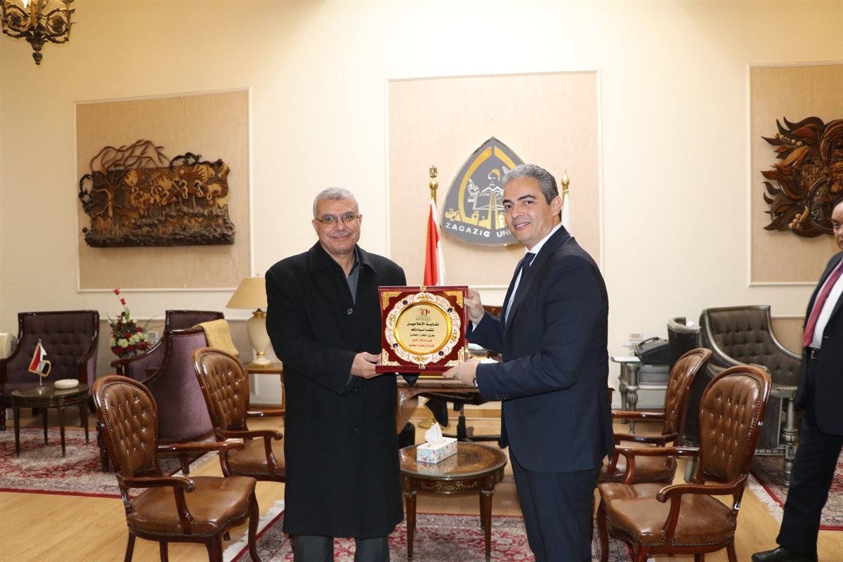 كما قدّم النقيب درع النقابة إلى الأستاذ الدكتور إيهاب الببلاوي، نائب رئيس الجامعة لشؤون الدراسات العليا والبحوث، وكذلك إلى الأستاذ الدكتور أحمد جمعة عبد الغني، أستاذ الاقتصاد بجامعة الزقازيق ومستشار رئيس الجامعة للسياسات والشؤون الاقتصادية، لدورهما في تطبيق وتنفيذ كل ما هو جديد لصالح أبناء جامعة الزقازيق.