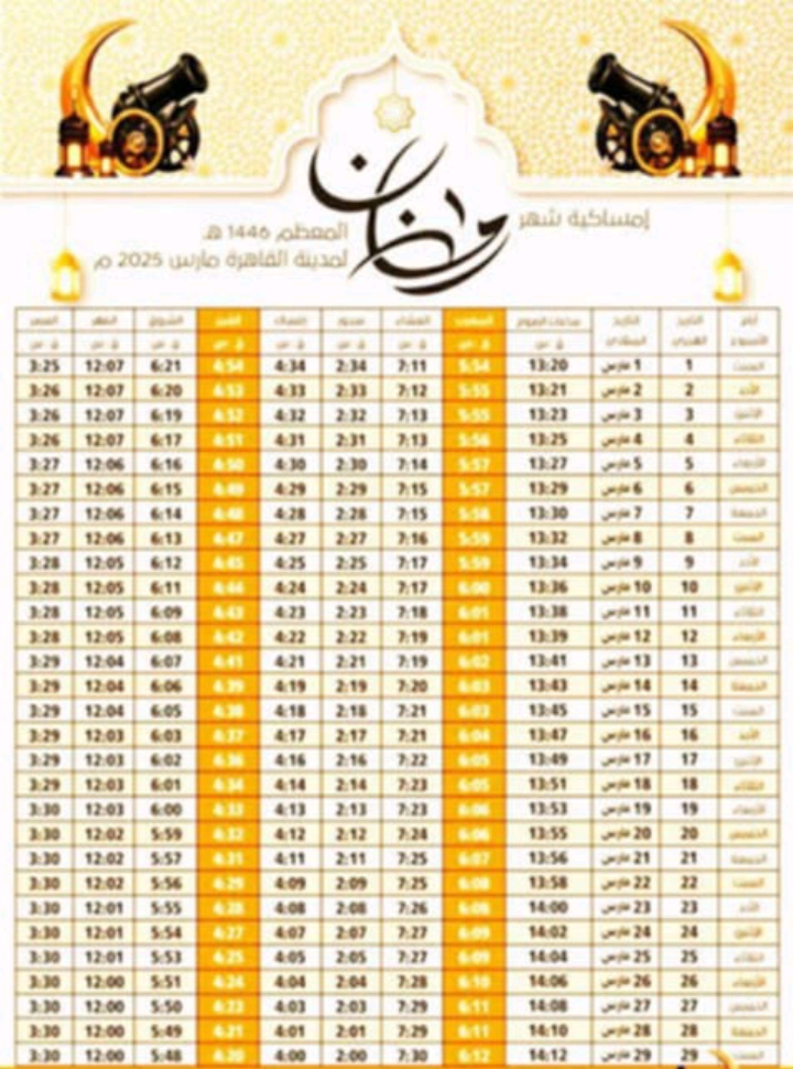 وبحسب الحسابات الفلكية للمعهد القومي للبحوث فإن أول يوم رمضان 2025 سيكون يوم السبت من الشهر المقبل 1 مارس 2025.