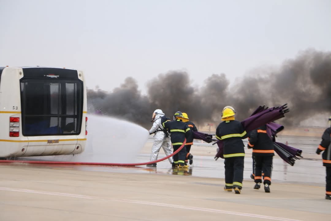 وقد شهدت التجربة محاكاة واقعية لإندلاع حريق في مخزن الحقائب على متن طائرة أثناء تجهيزها للإقلاع، مما استدعى تطبيق خطة الطوارئ والإستجابة السريعة بمشاركة جميع الجهات المعنية داخل وخارج المطار.