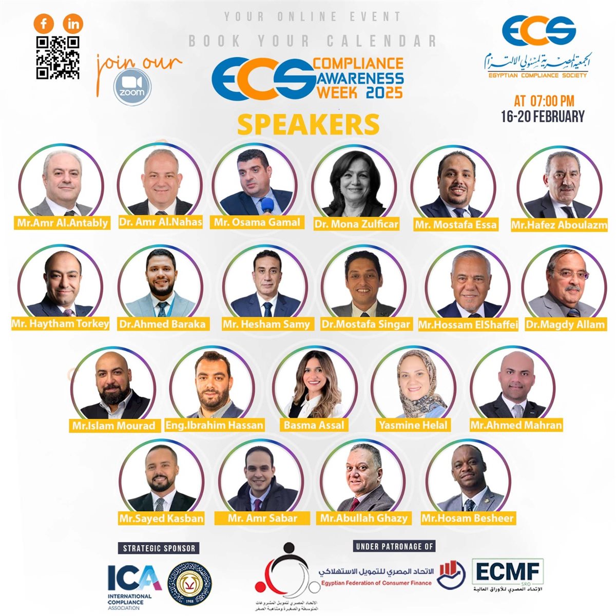 نظمت الجمعية المصرية لمسئولي الالتزام (ECS) الملتقي السنوي للتوعية بالالتزام - للعام الثاني على التوالي شارك في الملتقي نخبة من الخبراء لمناقشة أحدث المستجدات في مجالات الالتزام ، الاستدامة ESG ، الحوكمة ، وإطار عمل الرقابة الداخلية COSO ، مكافحة الاحتيال، مكافحة غسل الأموال وتمويل الإرهاب ، ومن الجدير بالذكر أن الملتقي هذا العام شهد إقبالا كبيرا من العاملين بالمؤسسات المالية المصرفية وغير المصرفية حيث قام بالتسجيل لحضور لجلسات الملتقي السنوي للتوعية بالتزام أكثر من ٥٥٠ زميل وزميلة من قطاعات مختلفة هو الأمر الذي فاق التوقعات والذي يعكس رغبة العاملين في السوق مثل هذه الفاعليات وغيرها لتعزيز مهاراتهم وتبادل الخبرات.