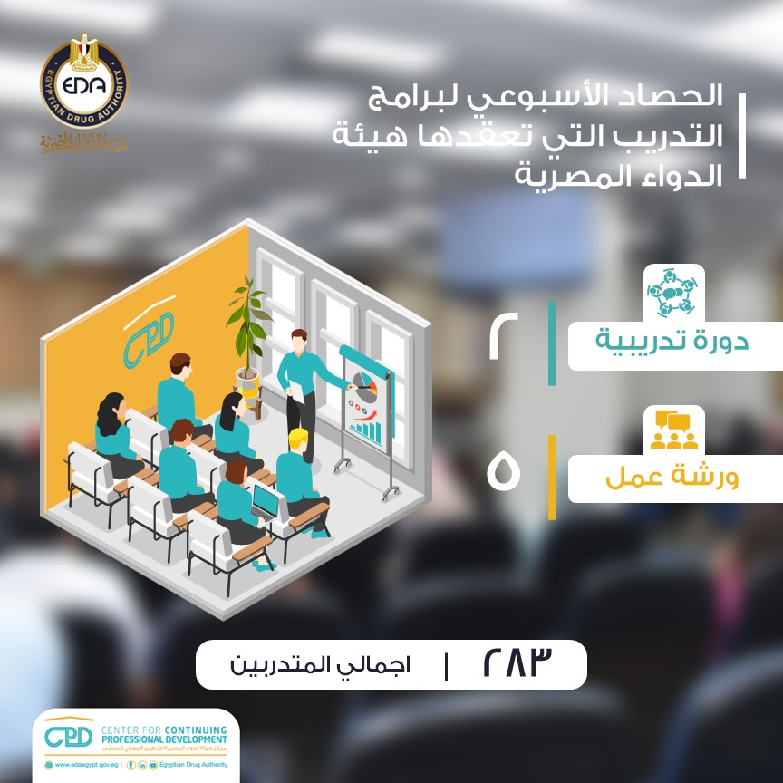 في إطار حرص هيئة الدواء المصرية على الارتقاء بمستوى الموارد البشرية في القطاع الدوائي من خلال تقديم البرامج التدريبية المتميزة، والتي يصممها مركز التطوير المهني المستمر، وإيمانًا من الهيئة بدورها الحيوي في تقديم الدعم الفني والتواصل المباشر مع شركاء الصناعة، ودعم برامج التميز المؤسسي للعاملين بالهيئة، ورفع مستوى الوعي والتثقيف الدوائي من خلال البرامج التدريبية المتخصصة.
