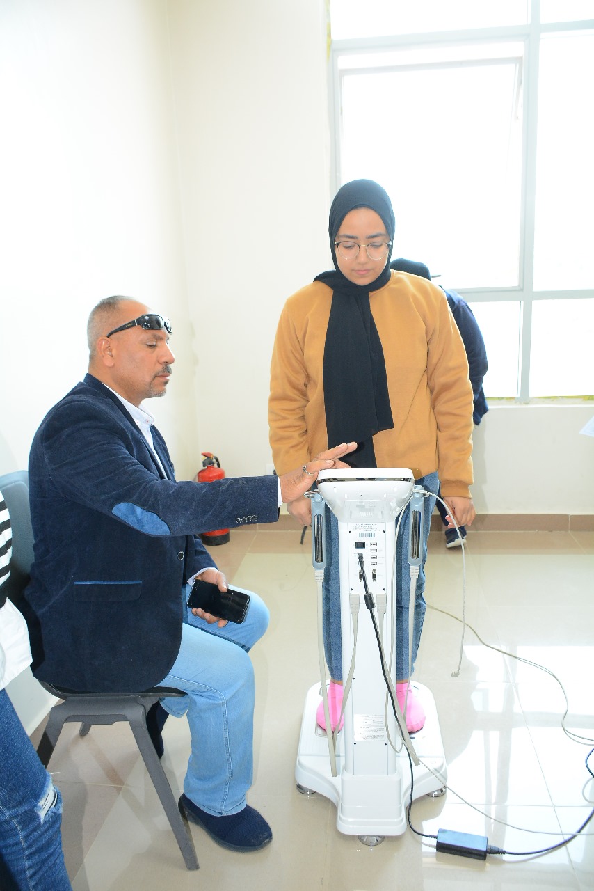 عقب المحاضرة، تم إجراء مسح طبي شامل للكشف عن السمنة باستخدام أحدث أجهزة قياس مكونات الجسم، بالإضافة إلى تحليل الهيموجلوبين لتشخيص الأنيميا، وقياس السكر العشوائي والتراكمي، بهدف رفع مستوى الوعي الصحي بين الطلاب ومساعدتهم في متابعة صحتهم.