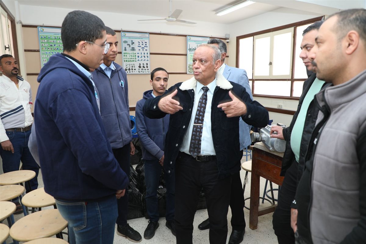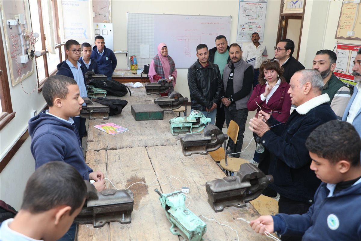 رافقه خلال الجولة التفقدية ؛ هاني عزت مدير المدرسة وإسلام حمدان المشرف العام على المدرسة ومدير عام مركز التدريب بالشركة مشاركين الطلاب في مختلف الأنشطة التي يؤدونها بالمدرسة سواء كانت أنشطة رياضية ترفيهية أم أنشطة تعليمية، فضلاً عن مشاركته الطلاب في عدد من الورش التعليمية والمعامل بمختلف التخصصات التعليمية الموجودة بالمدرسة للتأكد من سلامة وصول المعلومات للطلاب إيماناً من سيادته بأهمية التعليم الفني التخصصي وانه هو أساس التنمية التكنولوجية في المجتمعات الحديثة الأمر الذي يؤكد ضرورة للارتقاء بجودة التعليم حتى تتم مواجهة التحديات في مجال تطوير أنظمة التعليم الفني والتدريب والبرامج وطرق وأساليب التعليم وغيرها من مقومات العملية التعليمية وذلك لسد الفجوة بين متطلبات أسواق العمل ومخرجات المدارس الفنية.