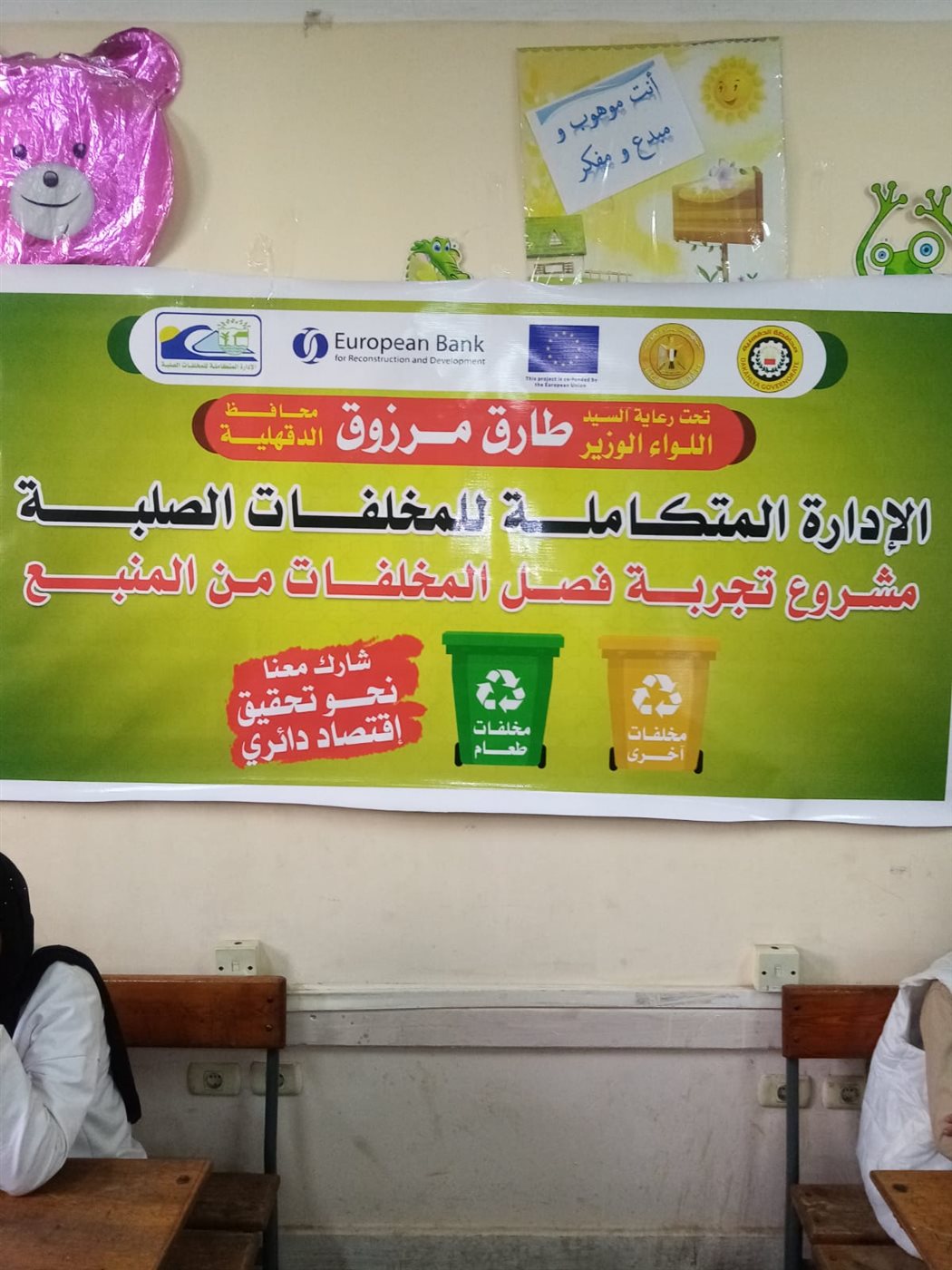 وقد كلف محافظ الدقهلية، محمد حمص مدير وحدة الإدارة المتكاملة للمخلفات الصلبة بديوان عام المحافظة، بالتنسيق مع الجهات المعنية في هذا الشأن، والذي قام بالتنسيق مع المهندس محمد الرشيدي، مدير مديرية التربية والتعليم بالدقهلية، والمكتب الاستشاري RWA استشاري مشروع كيتشنر، والدكتور توفيق الخشن، والمهندس شكري حسين وعبد المجيد عبد الرازق استشاري التوعية بالمشروع، وذلك ضمن مشروع تحسين نوعية المياه بمصرف كتشنر - مكون بناء قدرات.