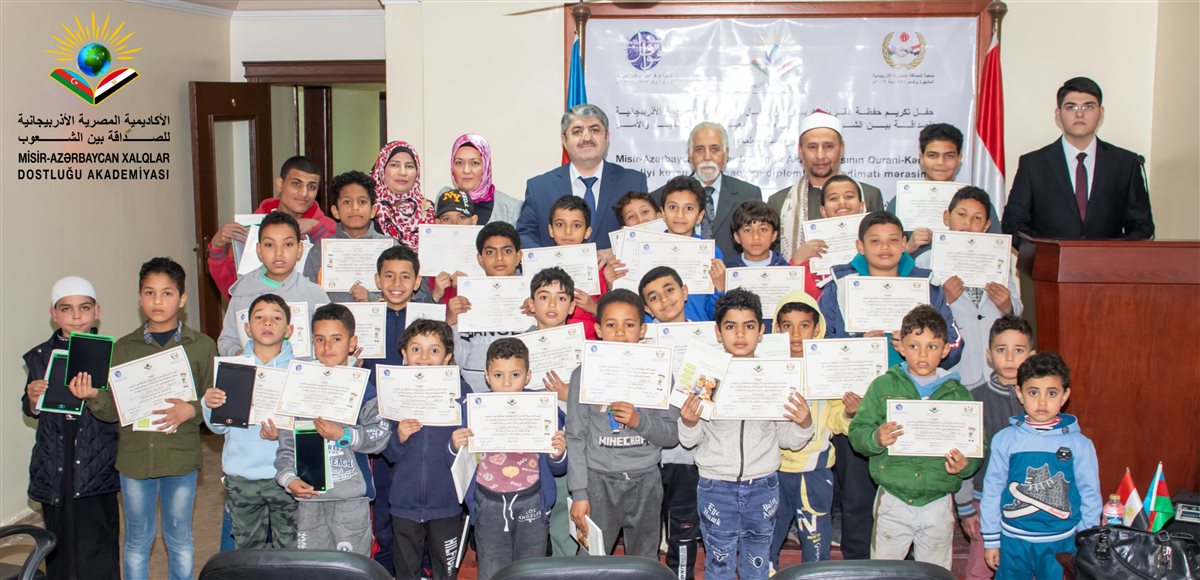 احتفلت الأكاديمية المصرية الأذربيجانية للصداقة بين الشعوب بتقديم الشهادات والهدايا لسبعين طفلاً وطفلةً ممن حفظوا أجزاءً من القرآن الكريم ومتن تحفة الأطفال.