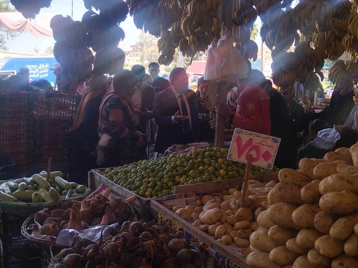 وفي ذات السياق تفقد المحافظ احد منافذ بيع الخضار وذلك لمراجعة العروض من السلع والاسعار وولوكيل وزارة التموين بتشديد الرقابة على جميع المنافذ بنطاق المحافظة للتأكد من الالتزام بالاسعار المعلنة علي الشاشات الالكترونية بالمنفذ.