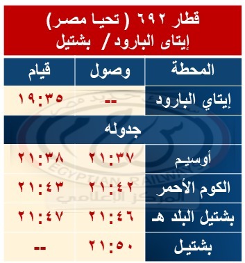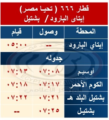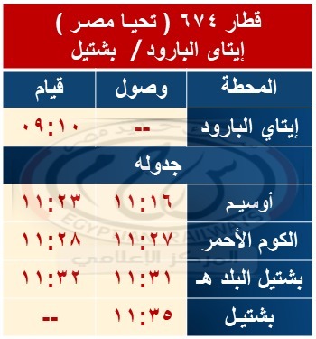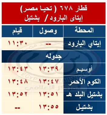 ويترتب علي ذلك تعديل مواعيد قطارات أرقام ( 682-677-669) وباقي القطارات تسير طبقا لجداولها الحالية.