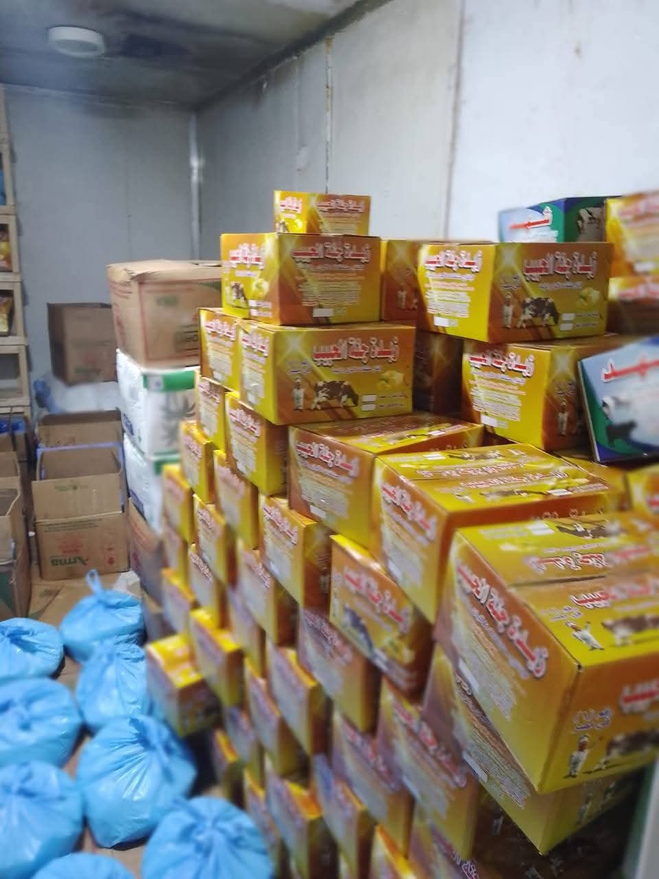 كما أسفرت الحملات عن ضبط ١٩ طنًّا من المواد الغذائية المتنوعة منتهية الصلاحية ومجهولة المصدر، شملت مصنعات لحوم ودواجن، وأسماكًا وجمبريًا مجمدًا، وخضارًا مجمدًا، ولوبيا جافة، وذرة، وجلوكوز حلويات، ونشا، ولبن بودرة، وفولًا مدشوشًا، وملح طعام، وعصائر معلبة، ومخللات، ومشًّا، وزبادي، وشعرية سريعة التحضير، وعدسًا، وتمورًا، وجبنة رومي، ومربى، وعسلًا أسود، وحلوى، ومقرمشات، وبسكويتًا، وسميد بسبوسة، وشوكولاتة، كما تم ضبط 3 أطنان من المواد الخام البلاستيكية.