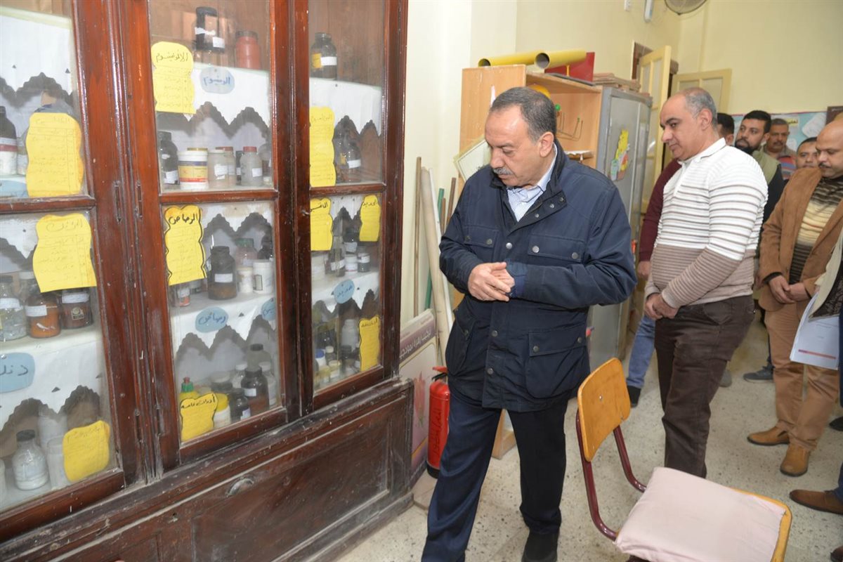 وتفقد المحافظ ـ خلال جولته ـ معمل العلوم بالمدرسة، واطلع على دفاتر العهدة ومحاضر الفحص وإجراءات تخزين المواد الكيميائية المستخدمة في التجارب العملية موجهاً بضرورة الإلتزام بمعايير الأمان داخل المعامل والتأكد من سلامة كافة المواد المخزنة، كما قرر إحالة لجنة فحص المواد الكيميائية بالمدرسة للتحقيق بعد رصد مخالفات تتعلق بعدم الإلتزام بإجراءات التخزين الصحيحة لبعض المواد وصلاحيتها من عدمه مشدداً على ضرورة التعامل بحزم مع أي تقصير أو تهاون حيث وجه أبوالنصر بتشكيل لجنة لإجراء حصر شامل للمواد الكيميائية والأحماض المخزنة داخل المعامل بكافة مدارس المحافظة والتأكد من مدى صلاحيتها من عدمه والتخلص الآمن من المواد التالفة أو المواد غير المستخدمة في المناهج الدراسية وتسليمها لمديرية التربية والتعليم مع إعداد تقرير تفصيلي حول وضع المعامل والإجراءات المتبعة في هذا الشأن.
