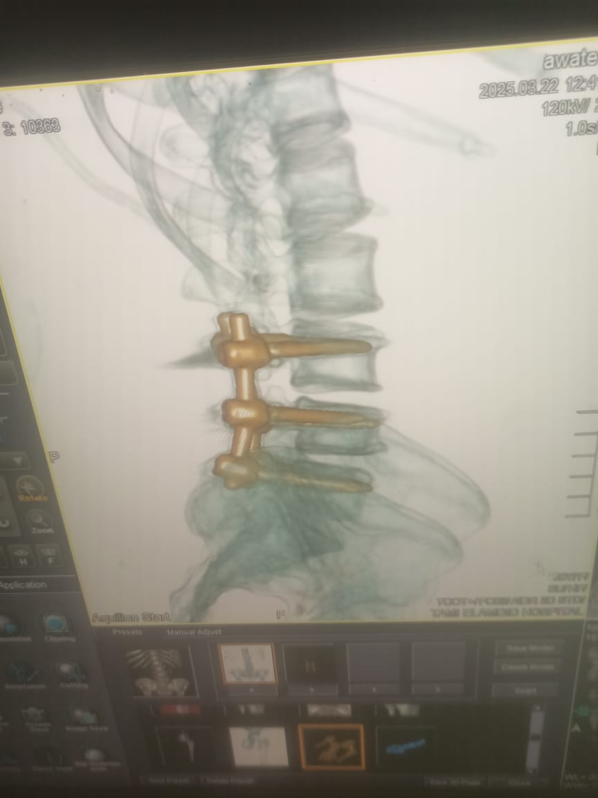 وأضاف وكيل الوزارة، أن المريضة تبلغ من العمر 45 عاما وقد حضرت إلى المستشفى وهى تعانى من سقوط فى القدم وصعوبة شديدة ف الحركة وعدم تحكم فى البول بالإضافة إلى الالام شديدة فى الظهر وعقب إجراء  الفحوصات اللازمة تبين وجود عدد 2 غضروف قطنى احدهما منفجر بين الفقرات القطنيه الثالثه والرابعه والرابعه والخامسه وبناء عليه احتاجت المريضه إلى تدخل طارئ تم على إثره  استئصال الغضروفين وتثبيت الفقرات القطنية بواسطة6  مسامير وشريحتين وتوسيع القناة العصبية.