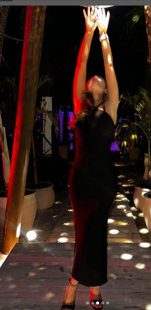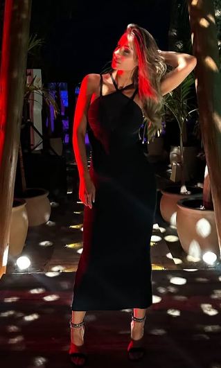 وبدت أنابيلا هلال بإطلالة عصرية جذابة، حيث ارتدت فستانًا طويلًا مجسمًا، مكشوف من الظهر، صمم الفستان من قماش اللاميه باللون الأسود، الفستان عكس قوامها الممشوق ووزنها المثالي.