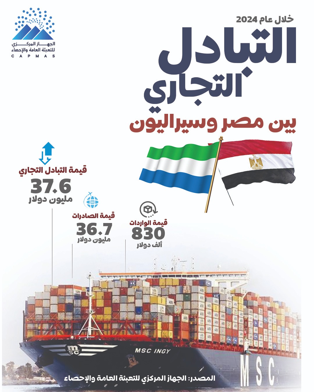 الإحصاء:37.6 مليون دولار قيمة التبادل التجاري بين مصر وسيراليون خلال عام 2024