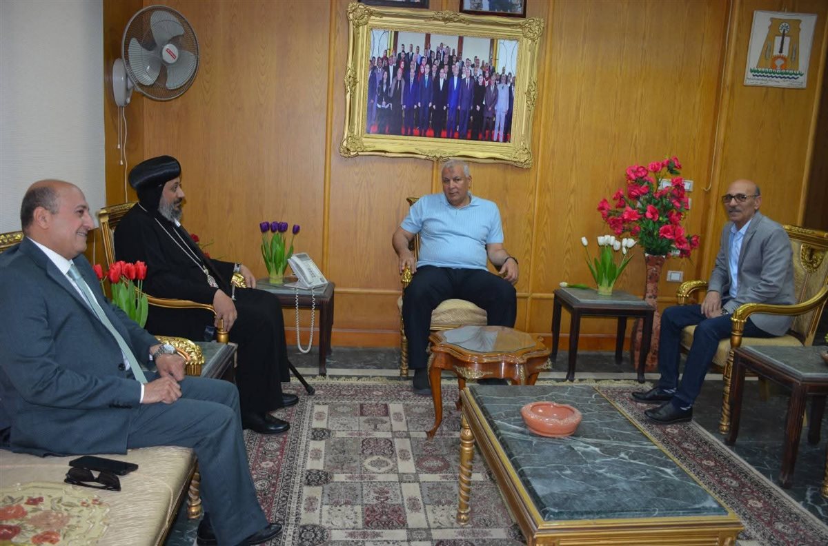 استقبل اللواء محمد الزملوط محافظ الوادي الجديد، نيافة الأنبا أرسانيوس أسقف الوادي الجديد والواحات، لتقديم التهنئة بمناسبة حلول عيد الفطر المبارك، بحضور وفد من الكنيسة.