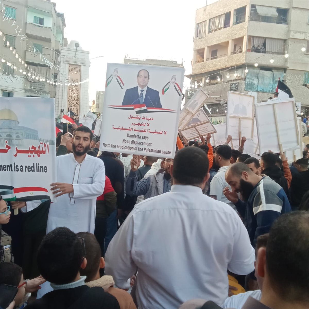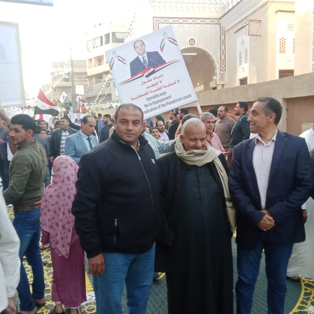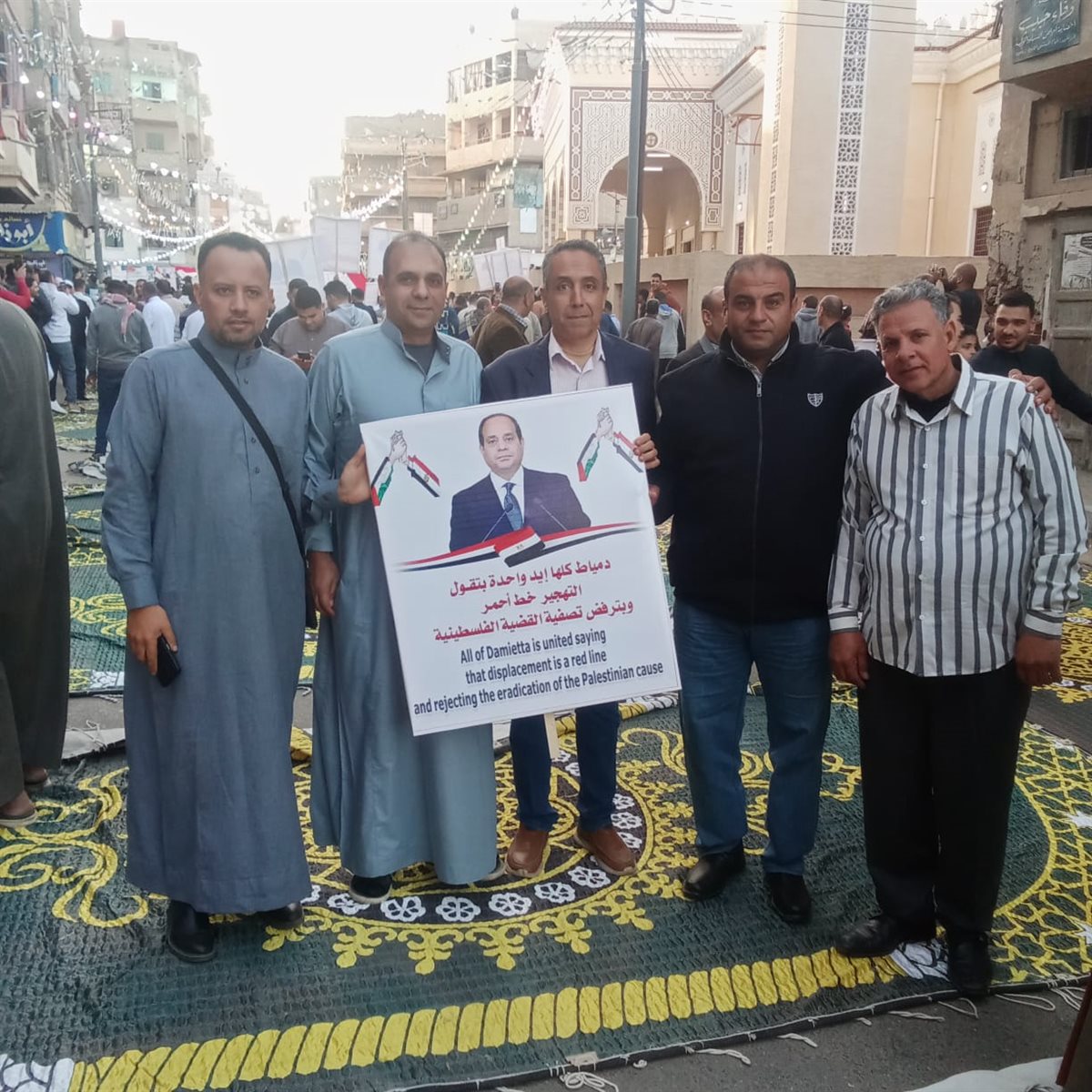 شهدت محافظة دمياط توافد آلاف المواطنين علي المساجد والساحات الكبيرة لتأدية صلاة عيد الفطر المبارك وسط اجواء من البهجة والتكبيرات والتهليل، وعقب انتهاء صلاة العيد تعالت أصوات المصلين بهتافات لدعم القضية الفلسطينية ورفعوا الأعلام المصرية والفلسطينية وسط هتافات "لا لا للتهجير وبالروح بالدم نفديكي يا فلسطين وكلنا ايد واحده ياريس ولا لتصفية القضية الفلسطينية
