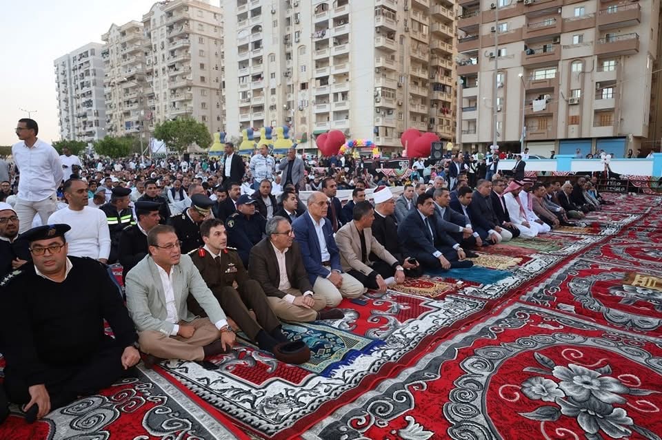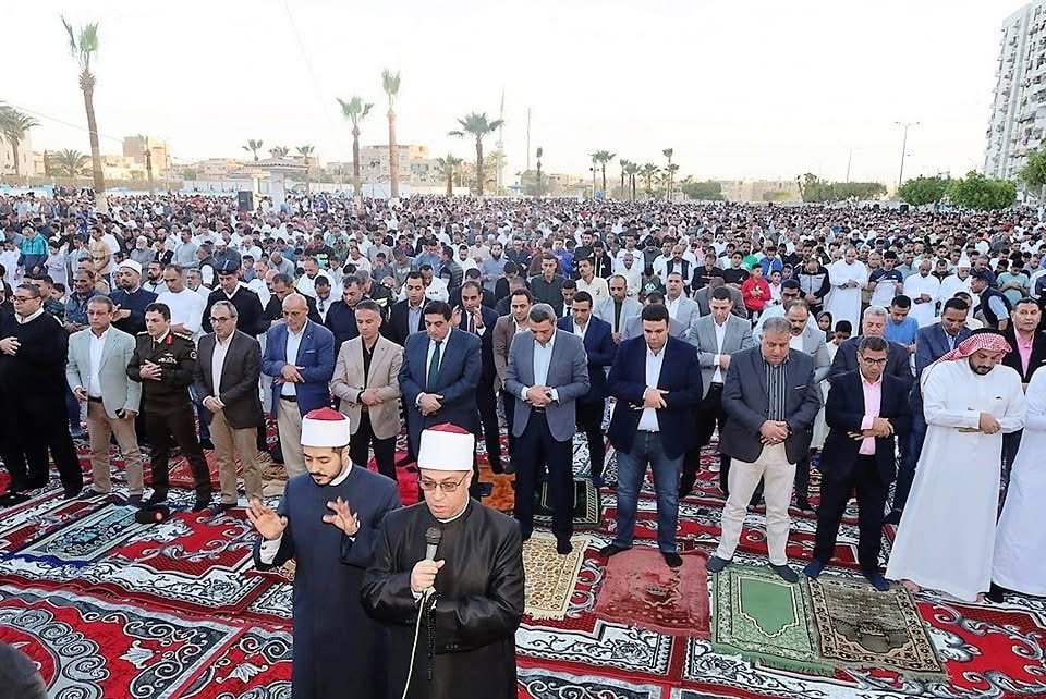 محافظ السويس يؤدي صلاة عيد الفطر المبارك بساحة حديقة الخادين بحي فيصل