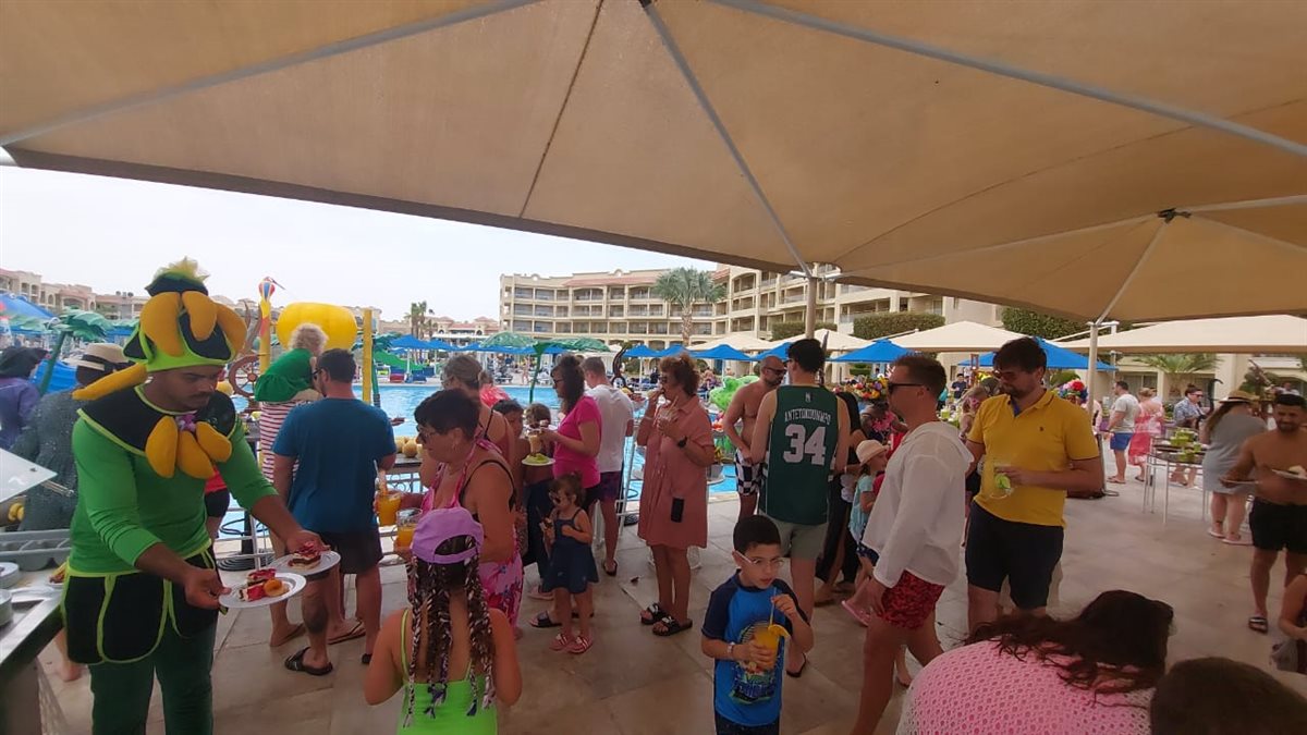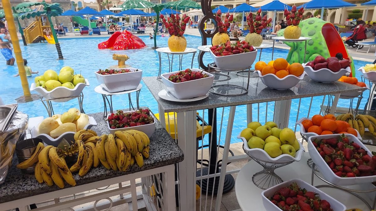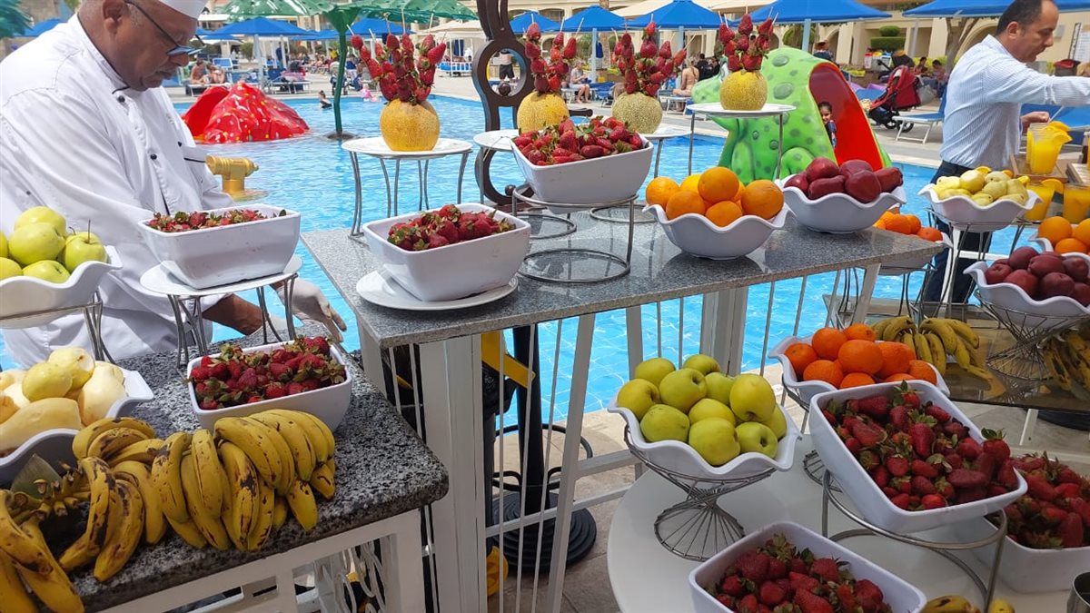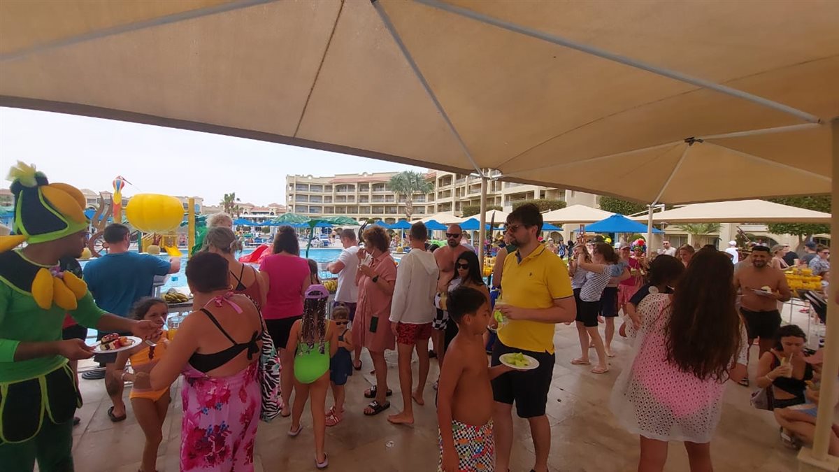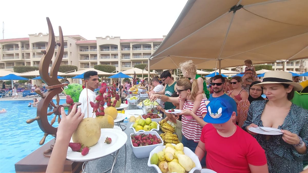 فى اطار احتفالات عيد الفطر المبارك بمنتجعات الغردقة نظم عدد من الفنادق السياحية بالغردقة، اليوم الثلاثاء، مهرجان الفواكه بمشاركة نزلاء الفنادق من السائحين الأجانب والمصريين الوافدين لقضاءاجازة عيدالفطر المبارك.