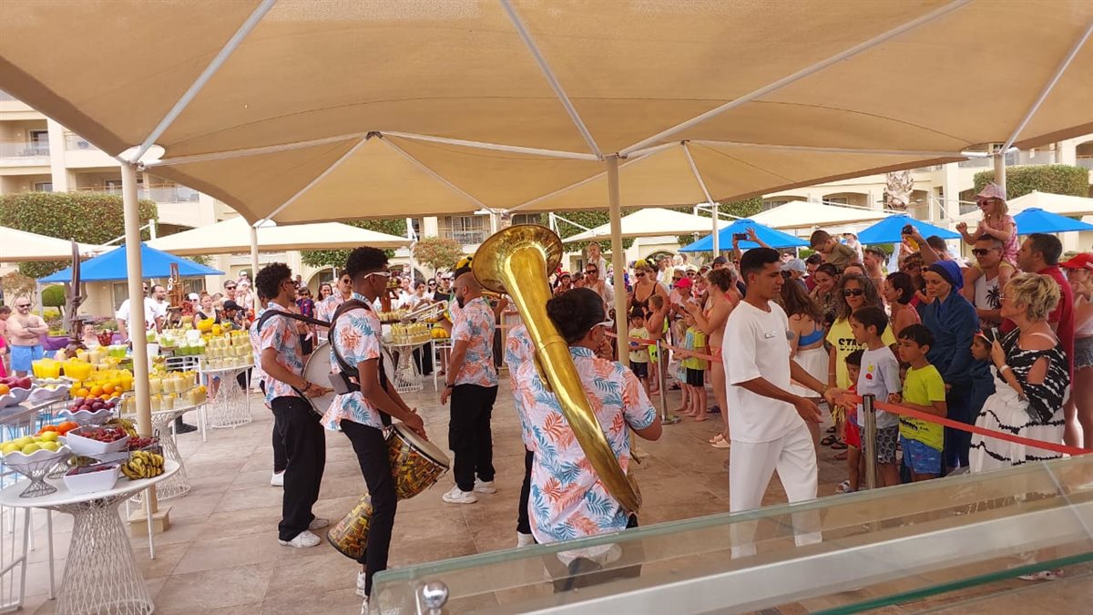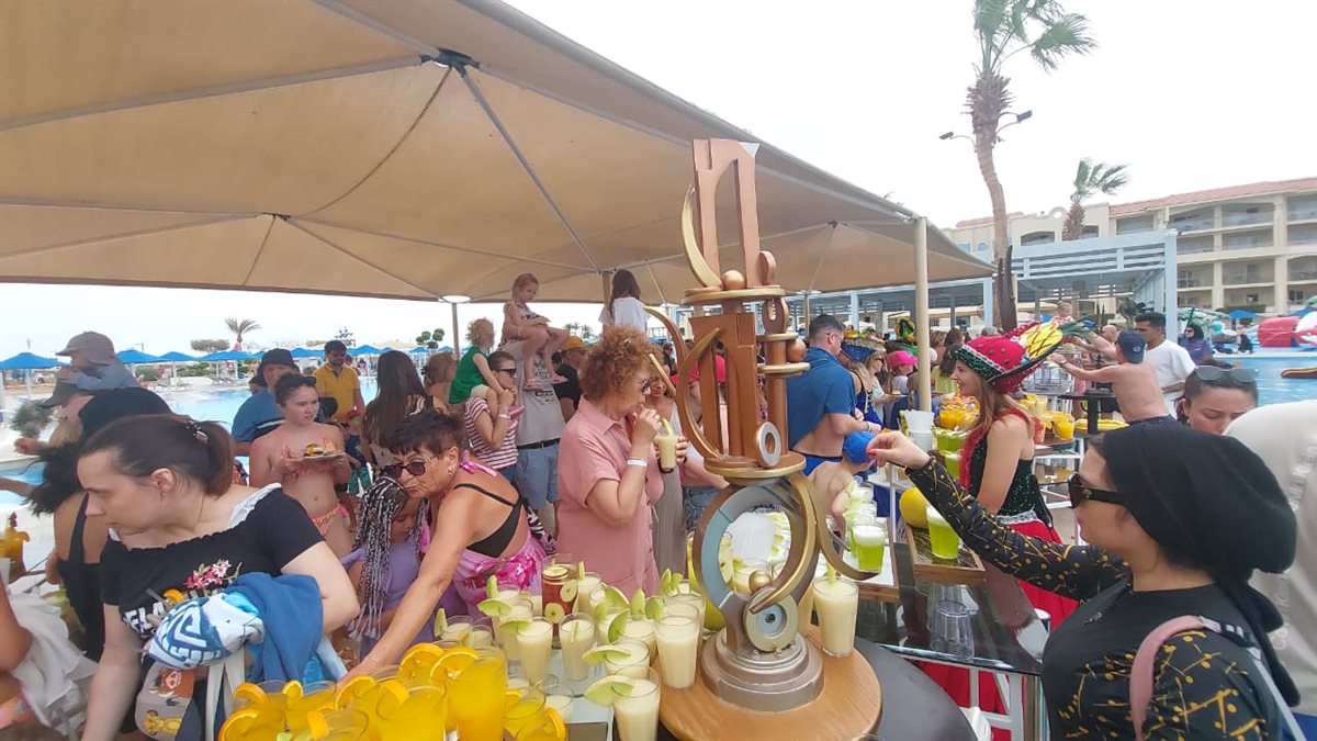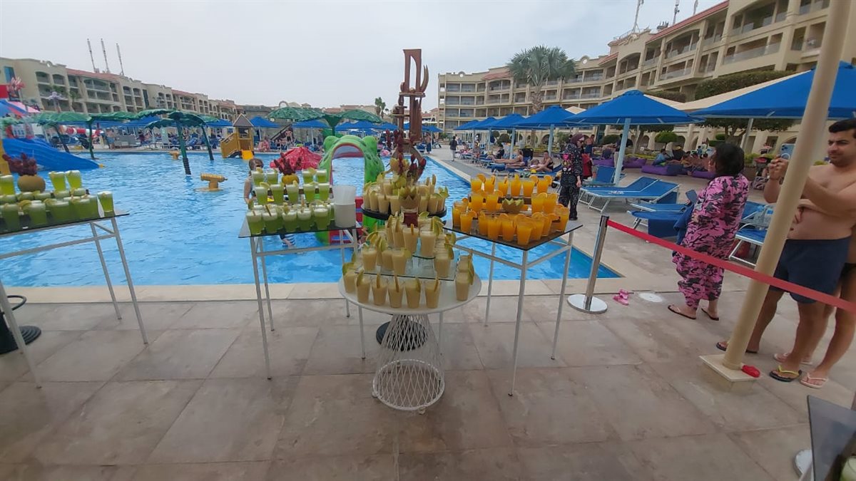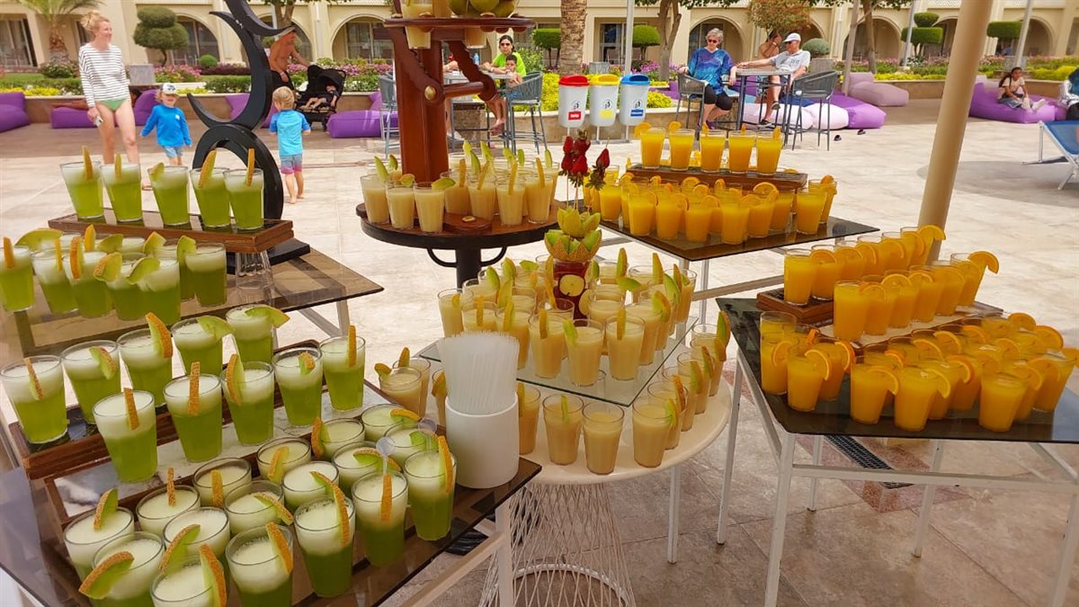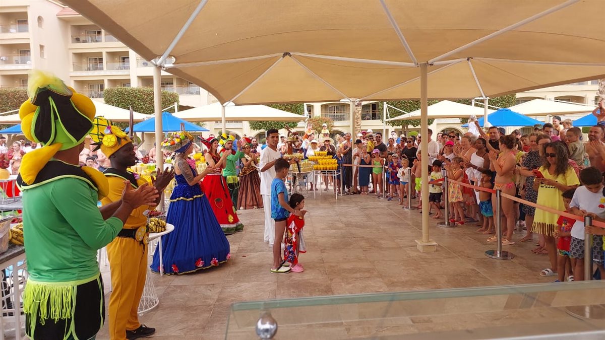 وقدم المهرجان أنواعًا مختلفة من الفواكه والعصائر من الفواكه ، جذبت انظار السائحين من كل الجنسيات مع المصريين الذين يقضون اجازة عيد الفطر بالغردقة.