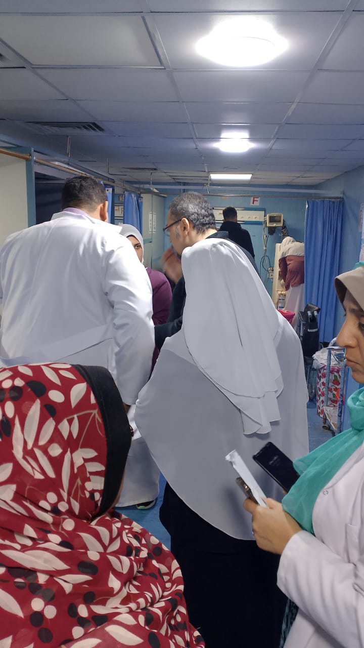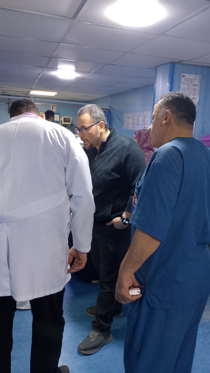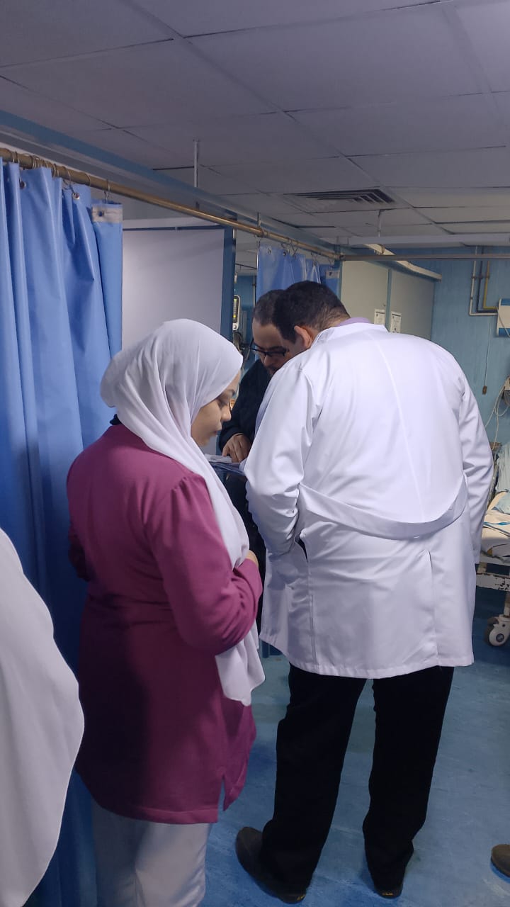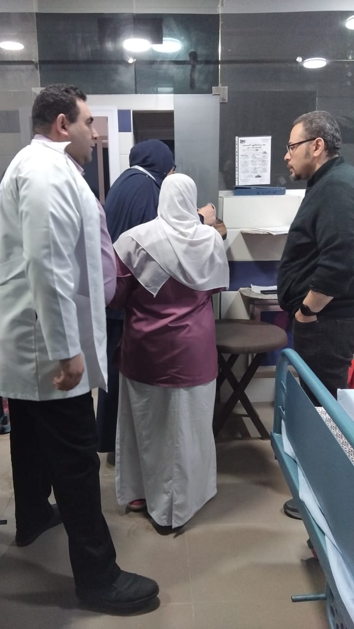 وقام فى ختام الزيارة بمراجعة مدى دقة تنفيذ البروتوكولات العلاجية المدونة بالتذاكر، والحالة الانضباطية للنوباتجية.
